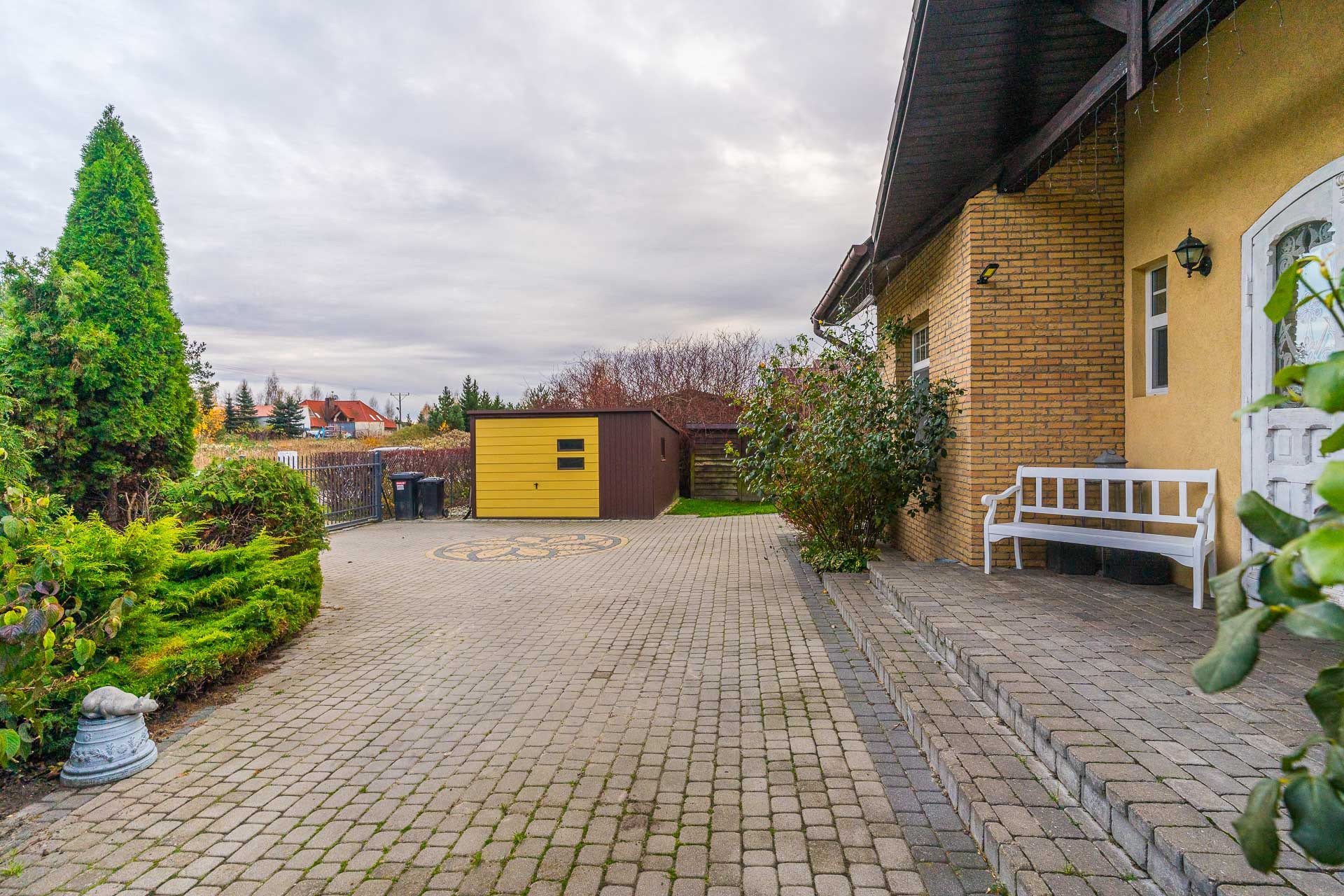 Droga dojazdowa utwardzona, wyłożona płytą betonową. Poza garażem, do dyspozycji jest kilka miejsc postojowych na posesji.