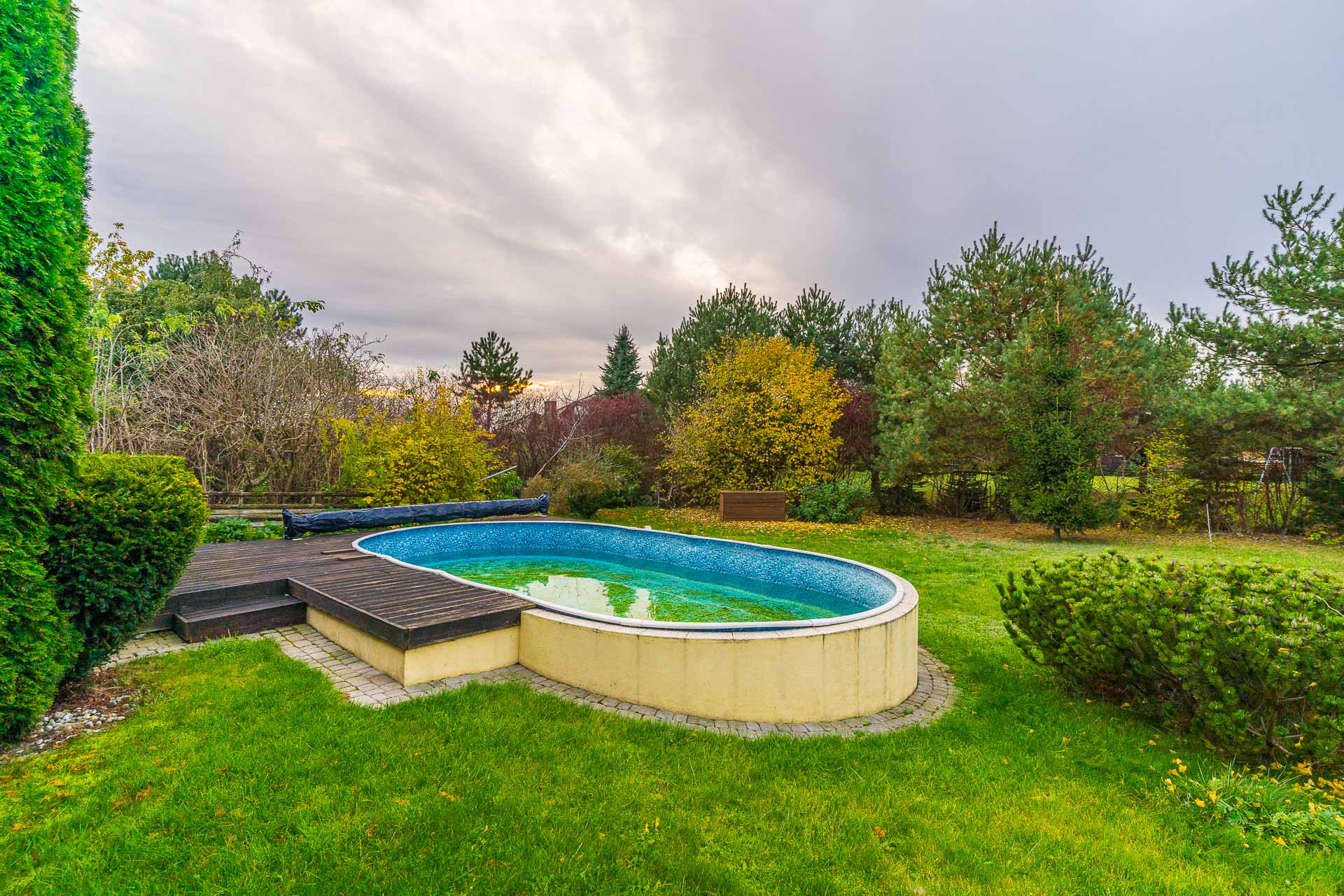 Basen ma wymiary 7,3 m na 3,6 m i jest głęboki na 1,2 m. Posiada inwerterową pompę ciepła o mocy 9Kw do podgrzewania wody. Nad tarasem zainstalowano elektryczną markizę.