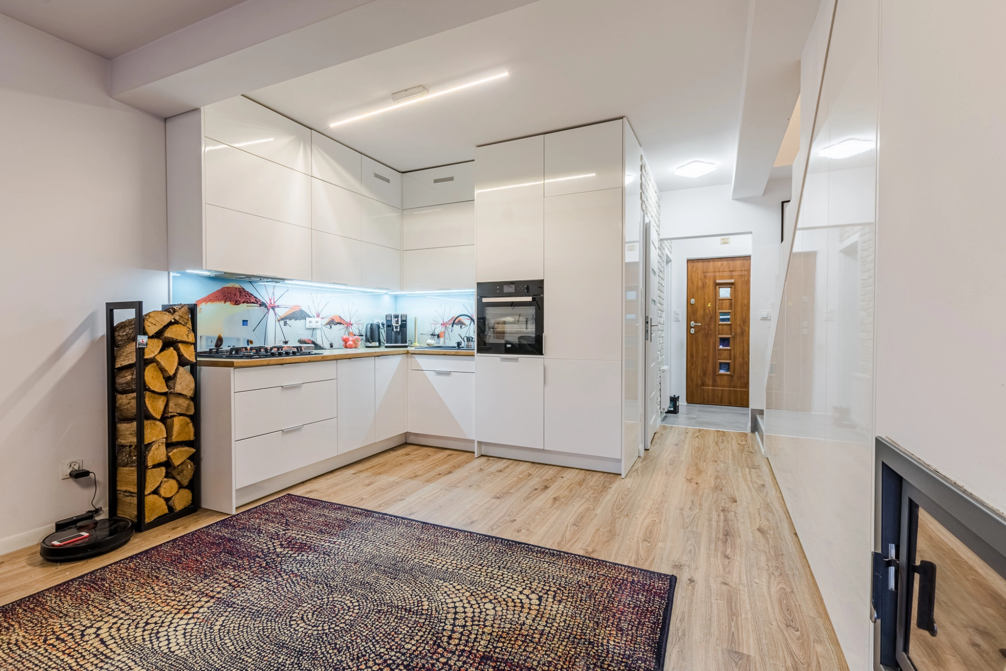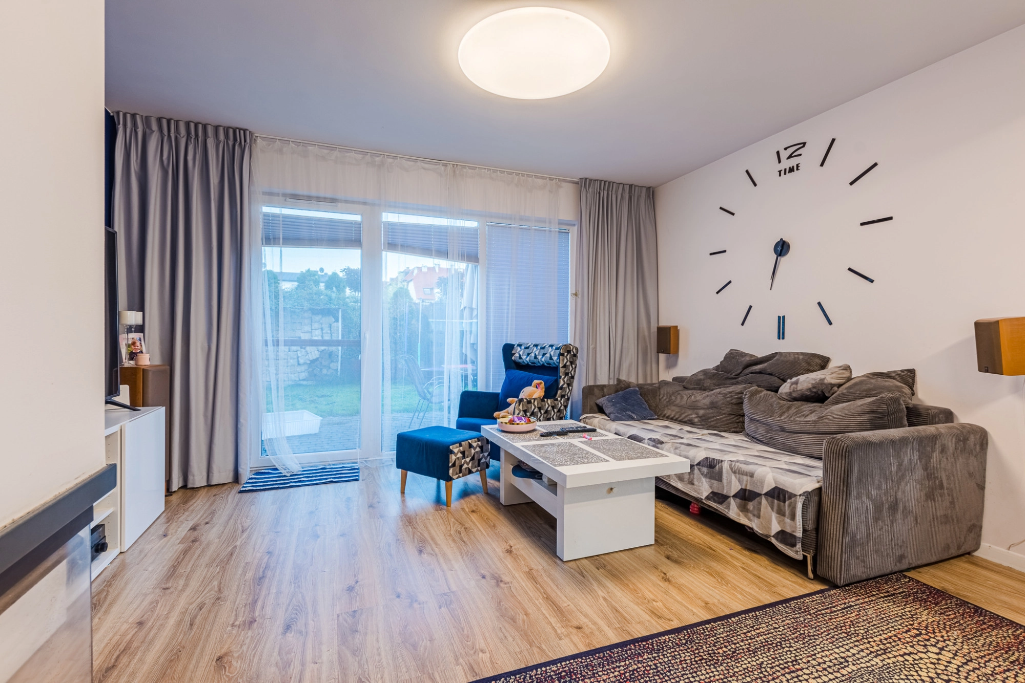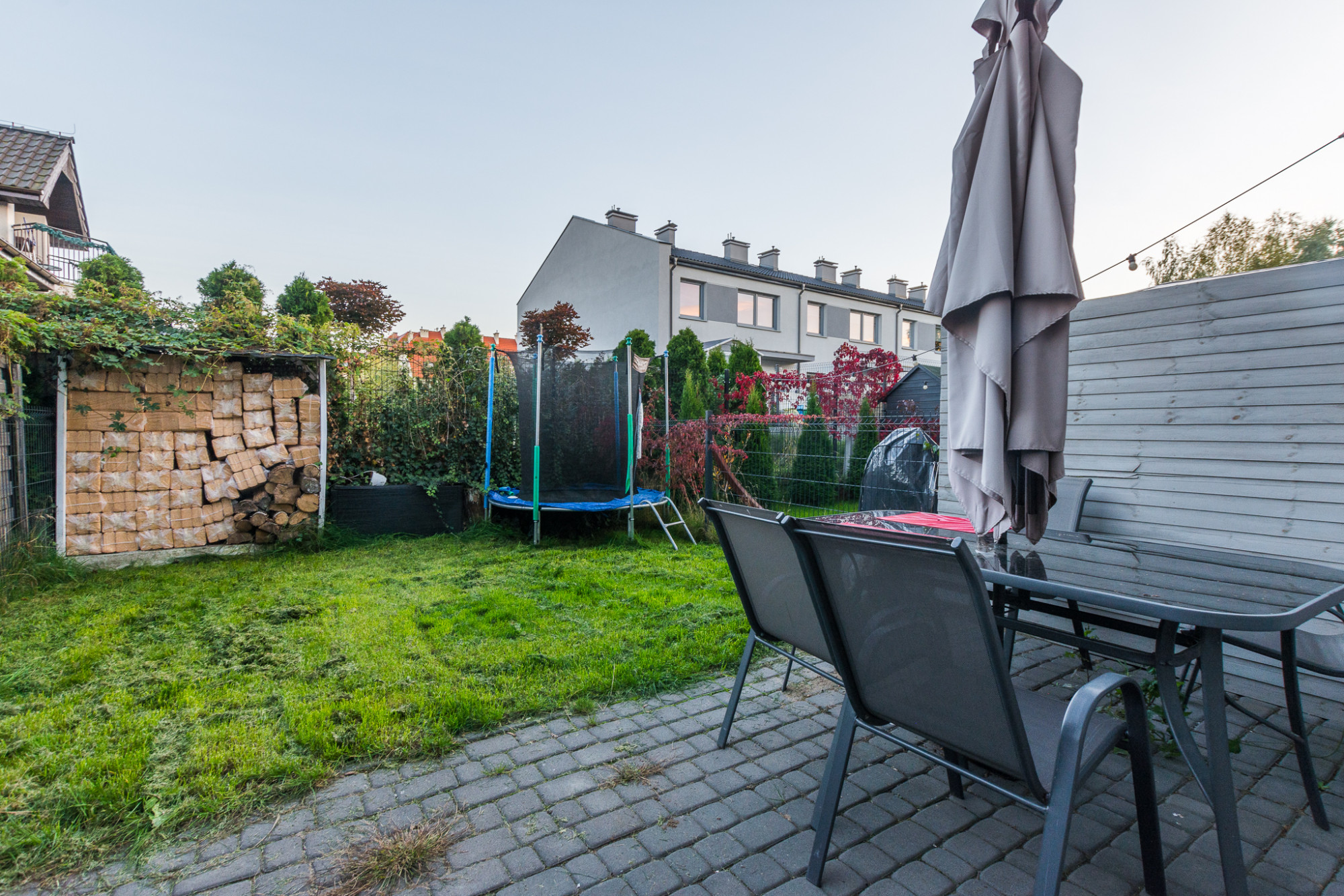 Z pokoju dziennego jest wyjście na ogród o powierzchni około 50m2. Pod schodami znajdują się zabudowane półki. Lokal jest wykończony i gotowy do wprowadzenia. Opłaty miesięczne wynoszą ok. 400 zł – nieruchomość jest bezczynszowa.