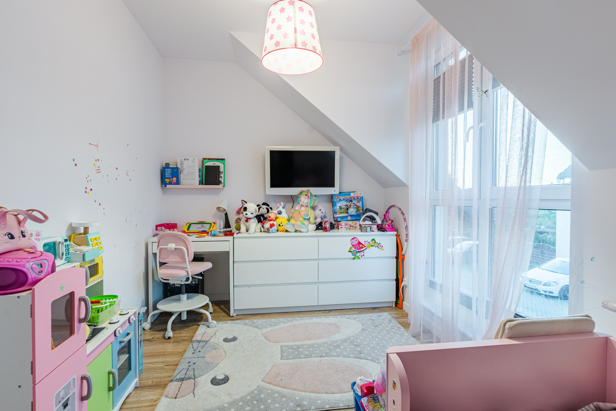 Na poddaszu jest okno i można poprowadzić kolejną partie schodów aby zrobić tam piąty pokój.