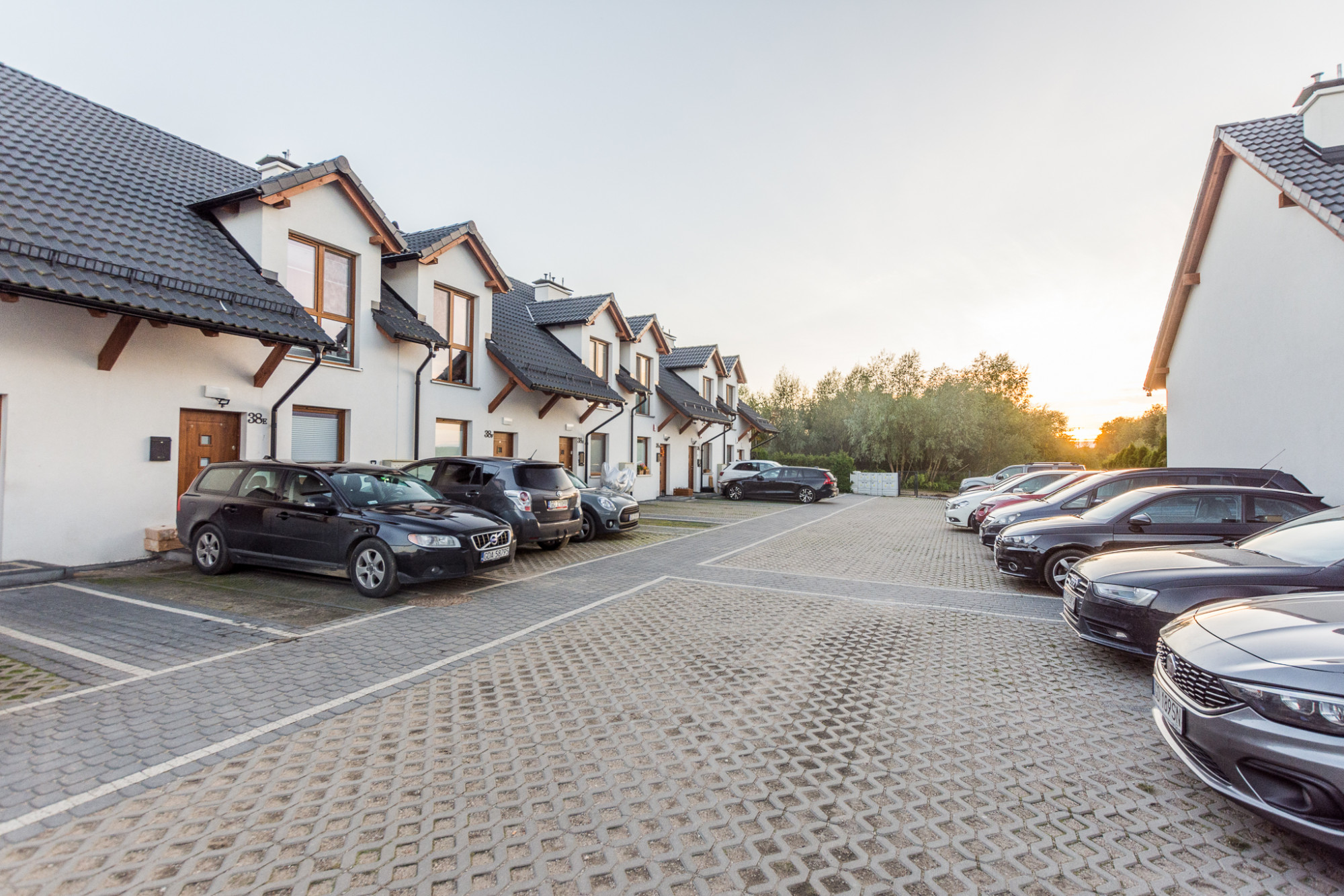 Dom jest ogrzewany piecem gazowym oraz kominkiem. Zainstalowana jest również klimatyzacja z pompą ciepła, która grzeje, chłodzi i suszy. Przed budynkiem znajdują się dwa miejsca parkingowe przynależne do budynku.