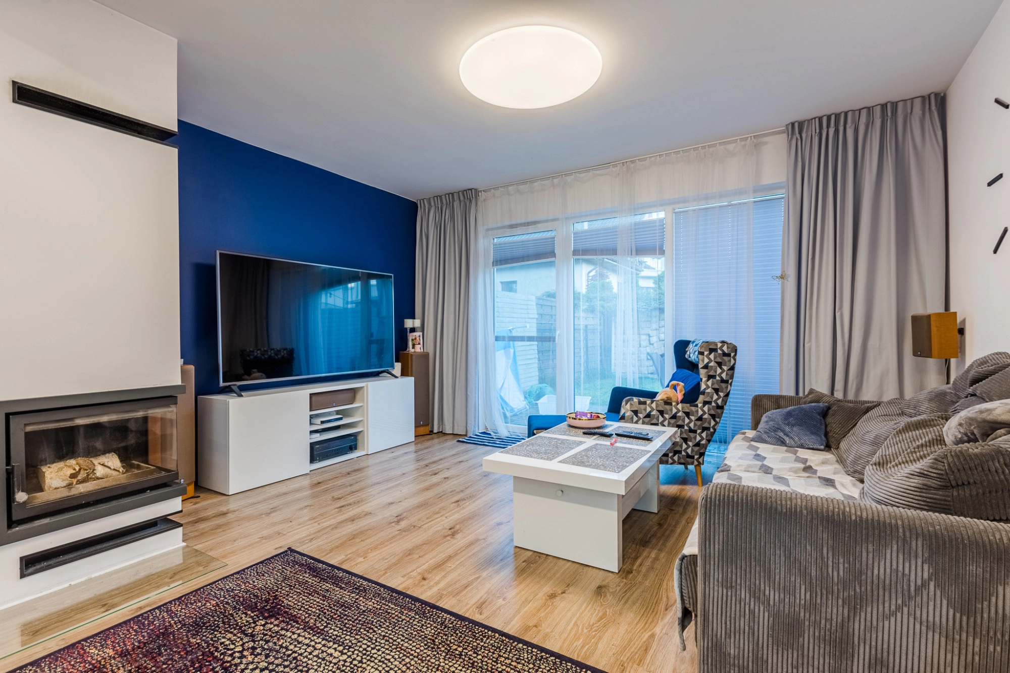 Z pokoju dziennego jest wyjście na ogród o powierzchni około 50m2. Pod schodami znajdują się zabudowane półki. Lokal jest wykończony i gotowy do wprowadzenia. Opłaty miesięczne wynoszą ok. 400 zł – nieruchomość jest bezczynszowa.