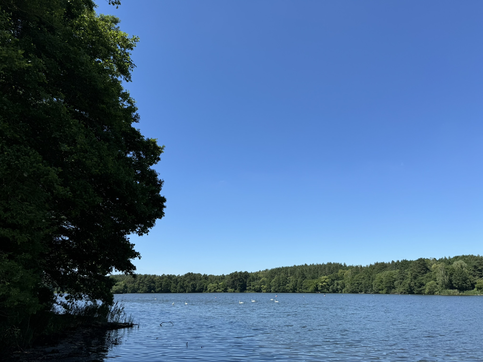 Około 7 minut pieszej drogi przez łąkę zajmuję dojście do jeziora!