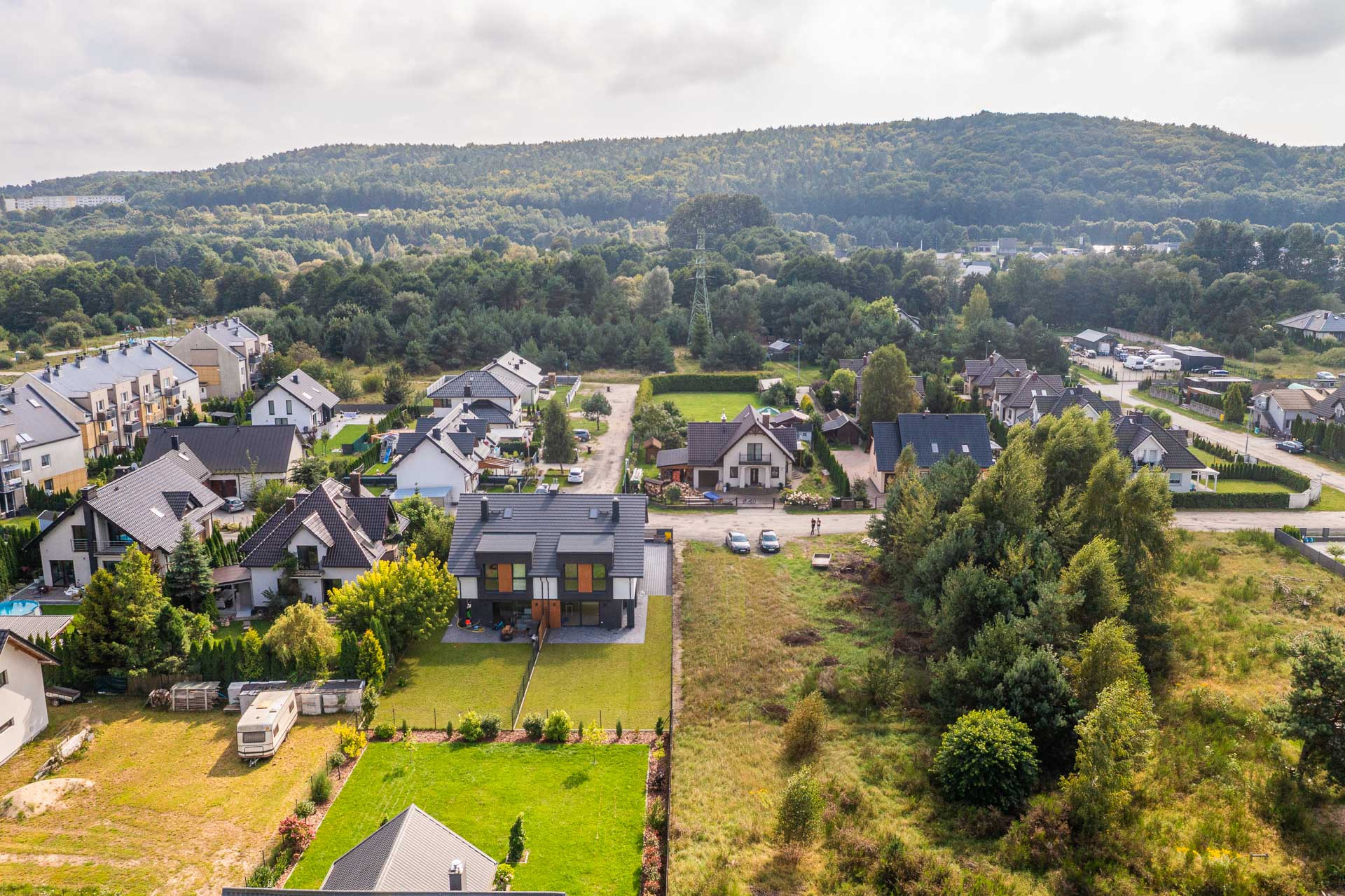 Dom położony jest w spokojnej, zielonej dzielnicy Betlejem w Redzie, w otoczeniu lasu i niskiej zabudowy jednorodzinnej. To doskonałe miejsce dla rodzin – ciche i kameralne, a jednocześnie świetnie skomunikowane z Trójmiastem dzięki bliskości drogi krajowej nr 6, przystanku autobusowego (5 min spacerem) oraz stacji SKM (5 min jazdy samochodem). W najbliższej okolicy znajdują się sklepy i punkty usługowe (Lidl, Biedronka, Rossmann – 3 min), szkoła, przedszkole, przychodnia, basen, fitness, kręgielnia oraz plac zabaw (250 m). Dodatkowym atutem jest bliskość atrakcji takich jak Aquapark Reda (9 min) czy Miejski Park Rodzinny (20 min spacerem). W niedalekiej przyszłości, zaledwie 300 metrów od domu, powstanie nowoczesna szkoła podstawowa dla klas 0-3.