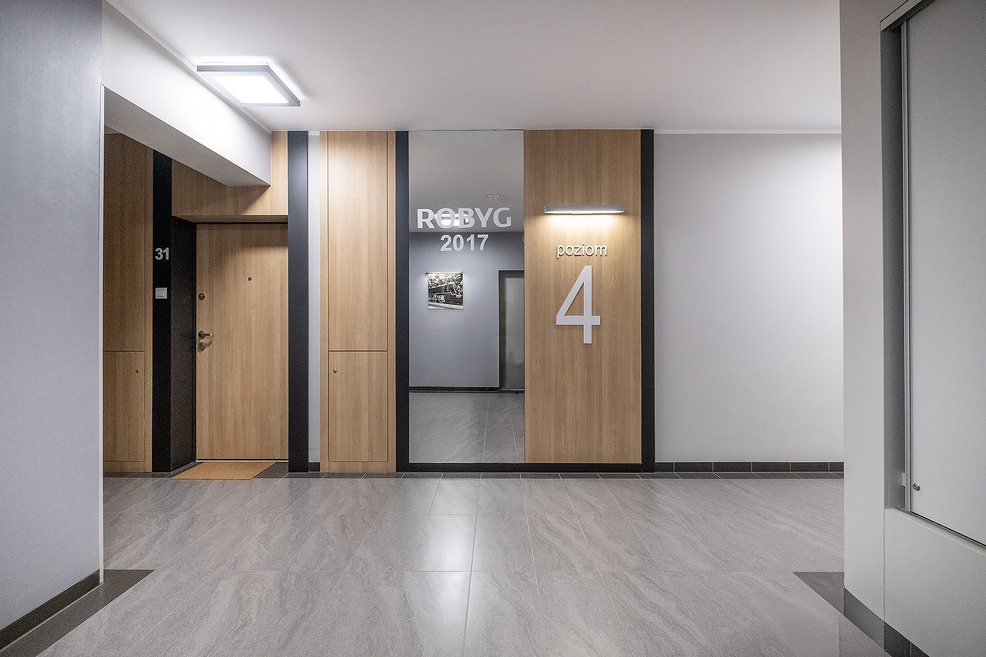 Nowoczesny, czteropiętrowy budynek z 2017 roku, wybudowany przez dewelopera ROBYG. Klatka schodowa jest zadbana, zabezpieczona domofonem, a mieszkańcy mają do dyspozycji windę.