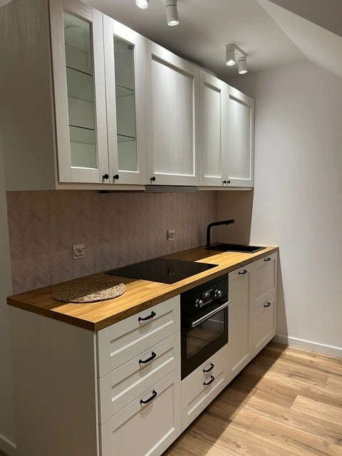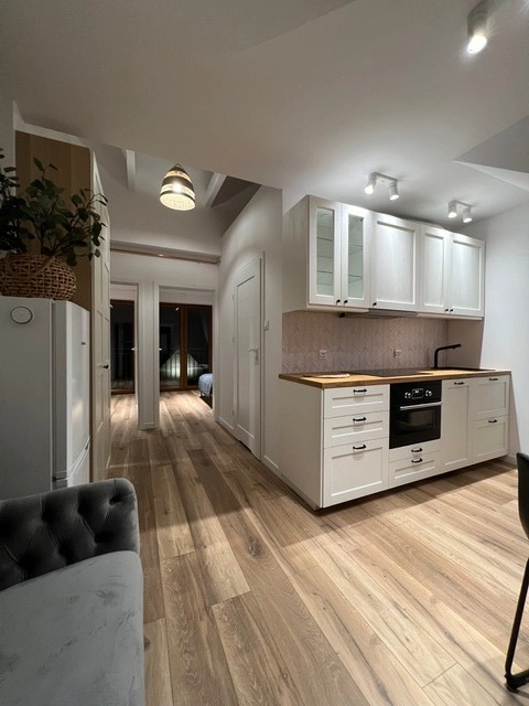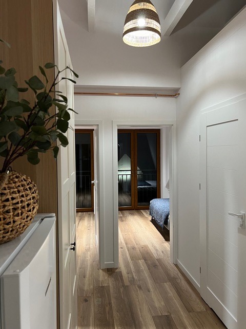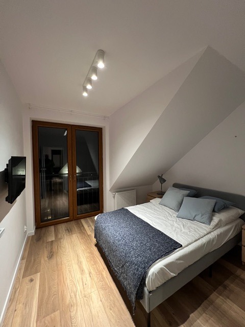 Aneks kuchenny wyposażony w wysokiej jakości sprzęt AGD. W głównej sypialni duże łoże małżeńskie natomiast druga sypialnia pozostaje do własnej aranżacji, może posłużyć  jako pokój dziecięcy bądź garderoba.