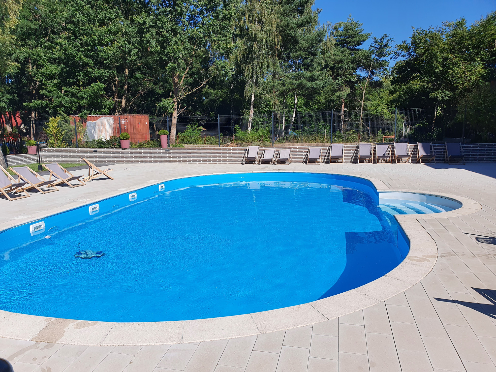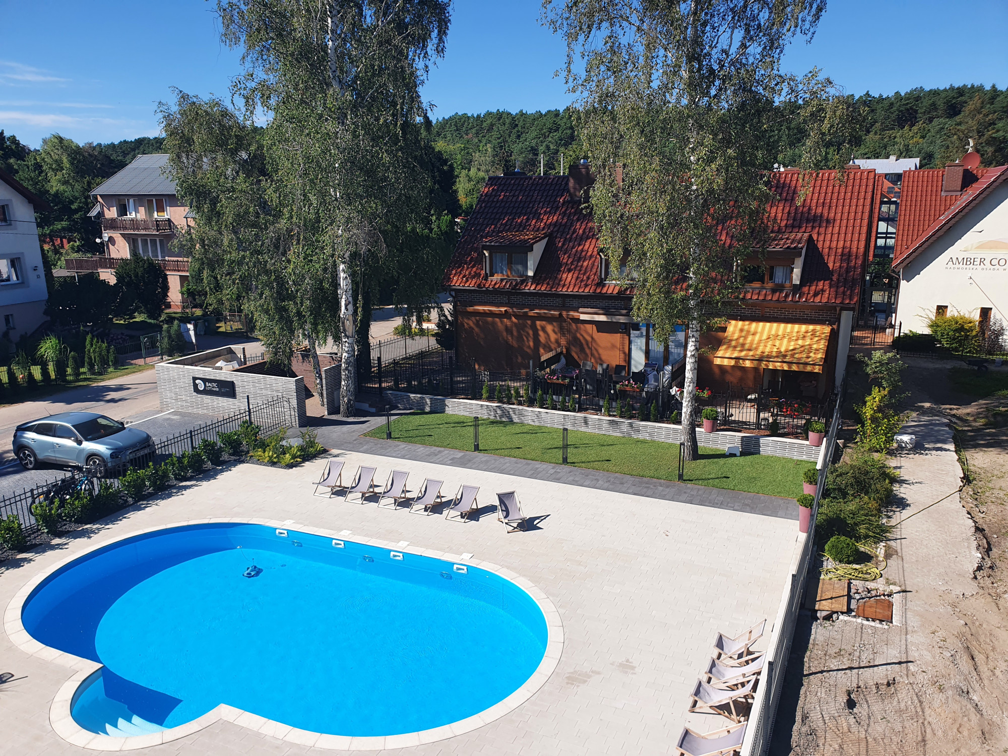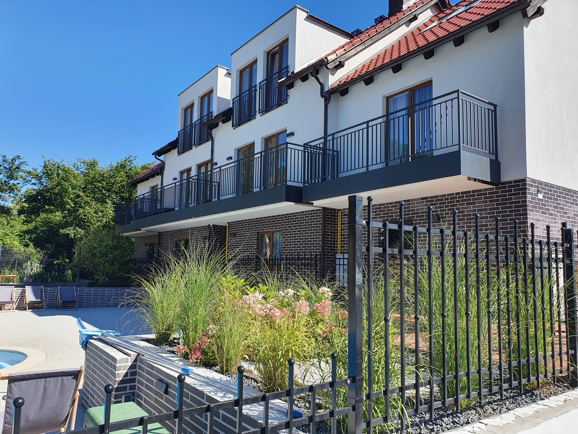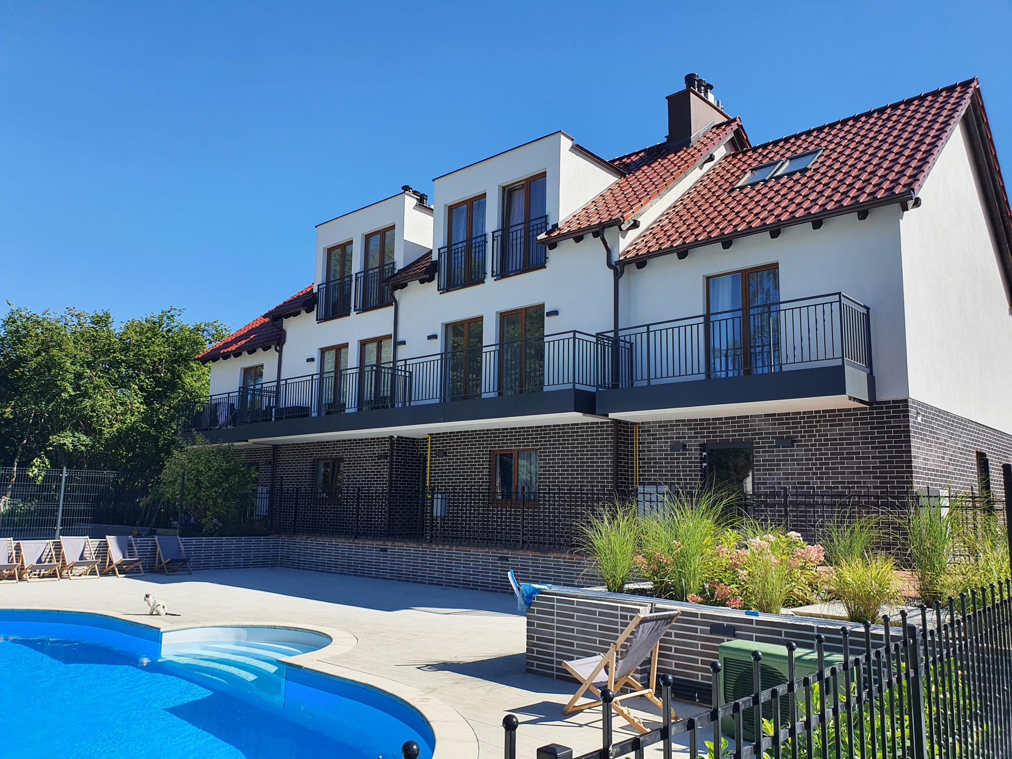 Niewątpliwym atutem jest duży ogród wyposażony w basen z pompą ciepła, który pozostaje do dyspozycji nowych właścicieli.