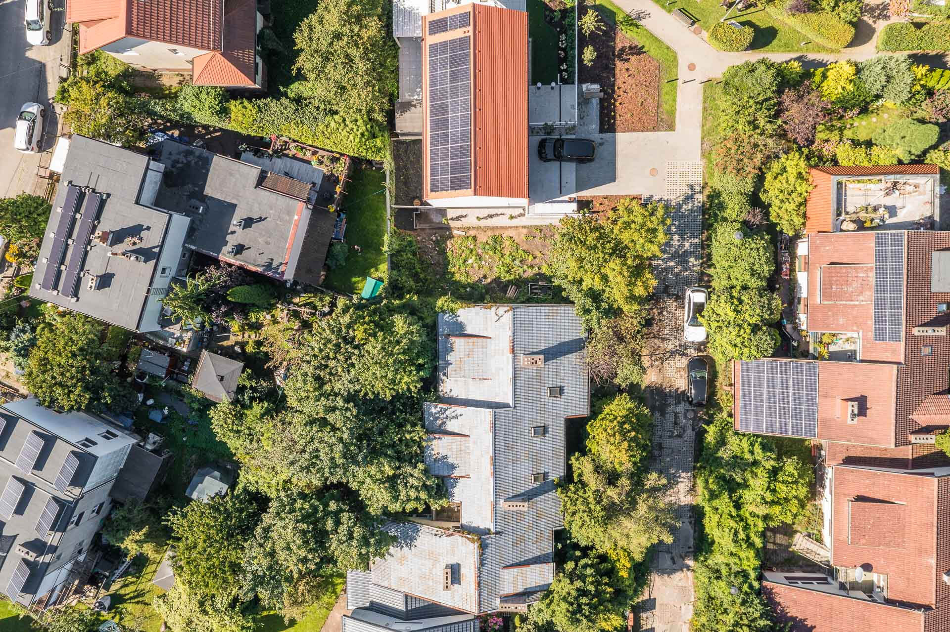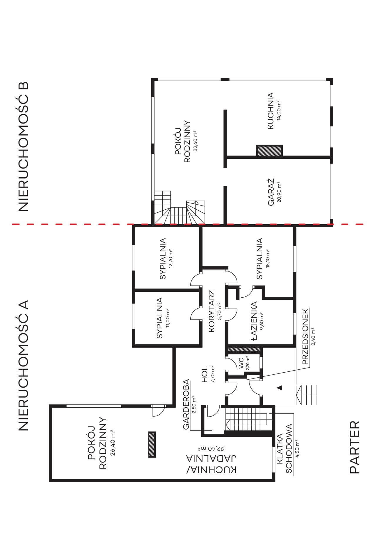 Na działce o powierzchni 716 m² znajdują się dwa połączone domy w zabudowie szeregowej o łącznej powierzchni całkowitej około 780 m², w tym około 500 m² powierzchni użytkowej. Budynki składają się z trzech kondygnacji: piwnicy, parteru oraz poddasza.