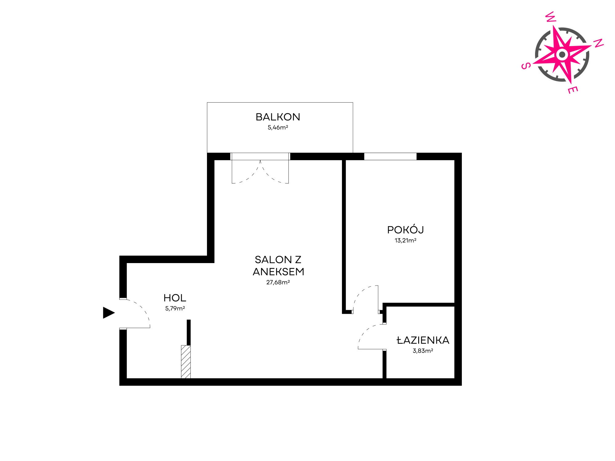 pokój z aneksem kuchennym 27.68 m2