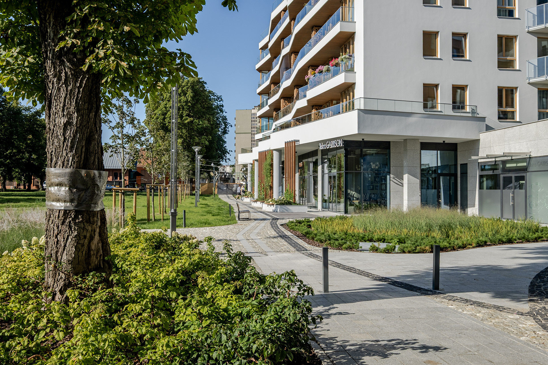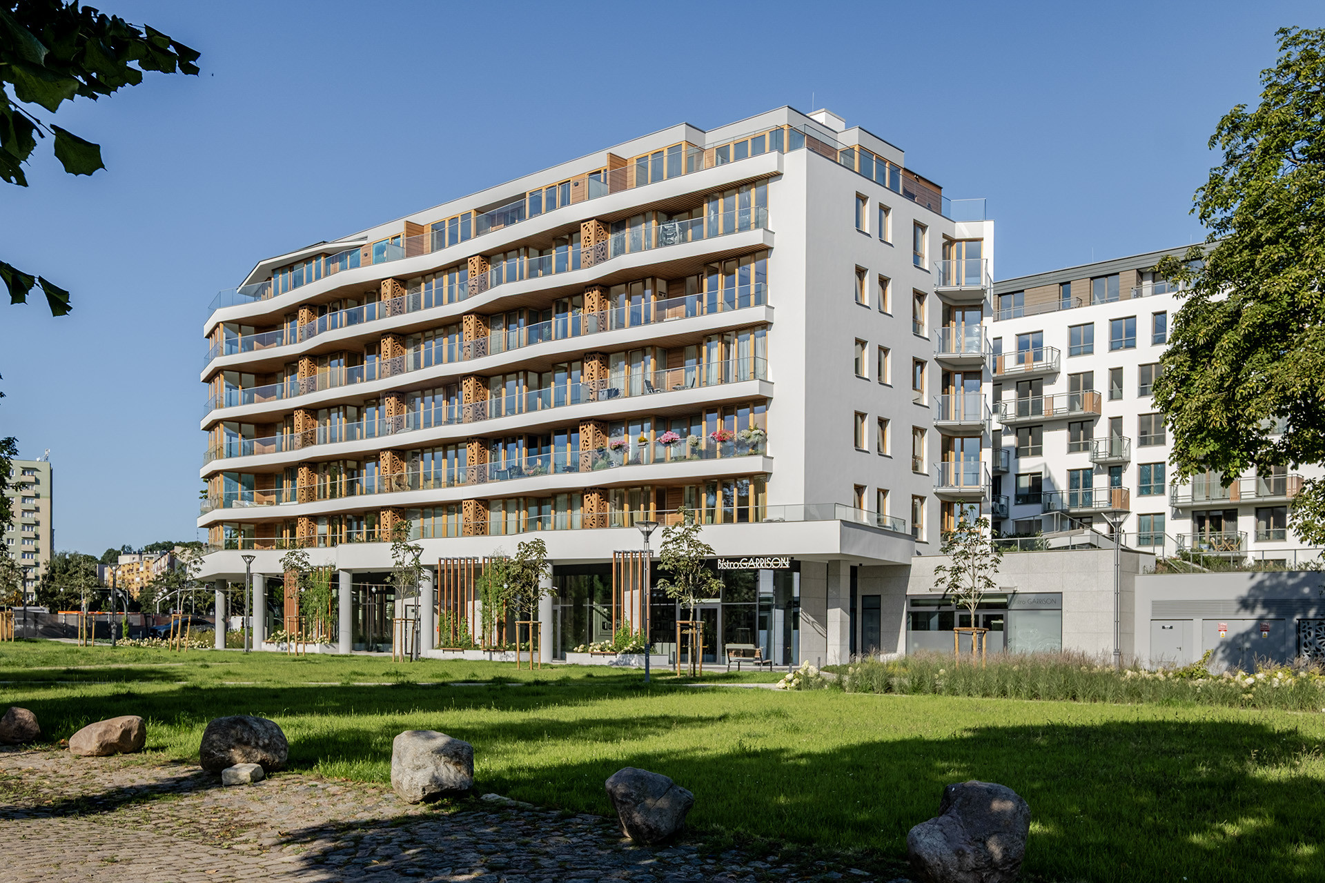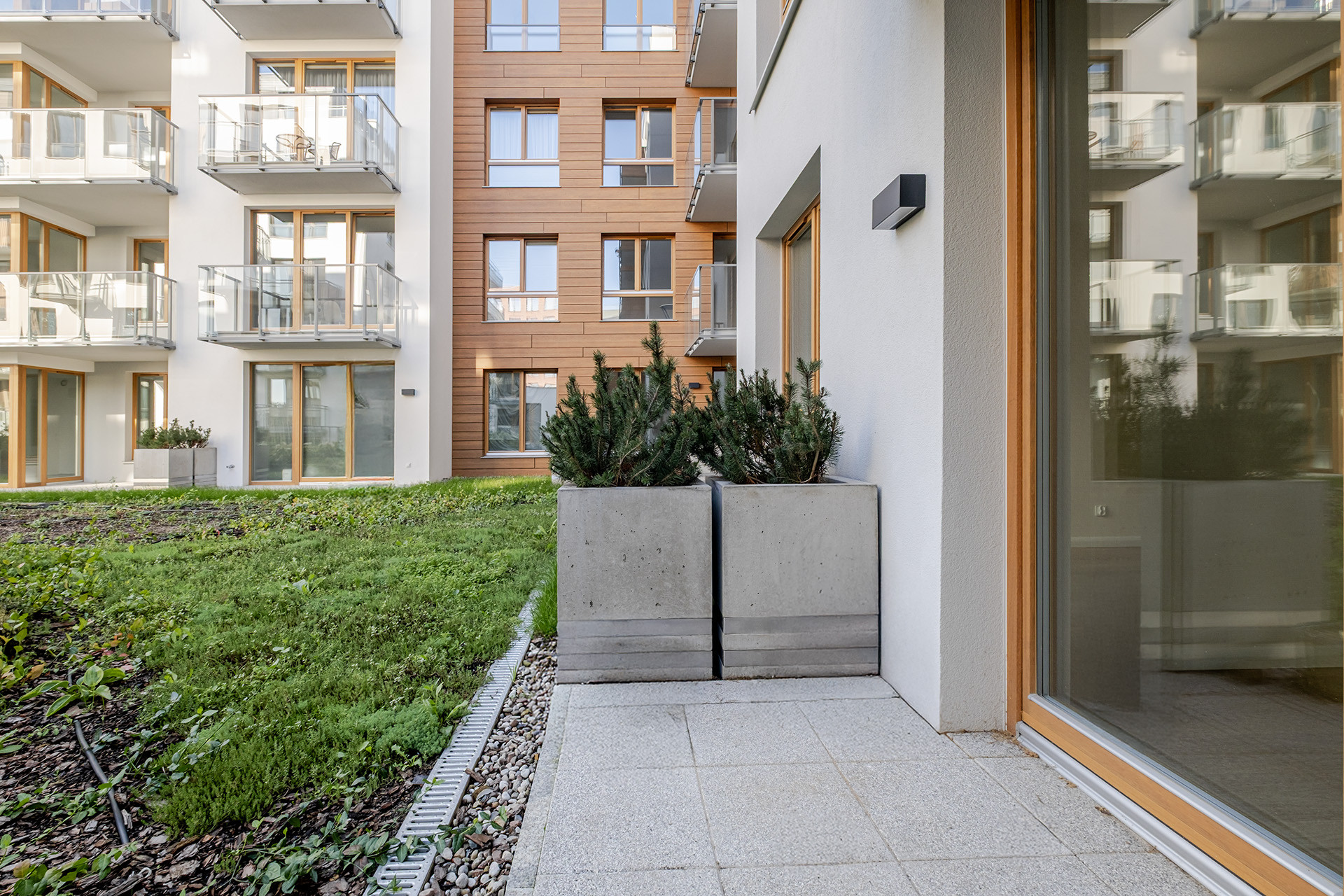 Nowoczesny apartamentowiec wzniesiony w 2025 roku przez cenionego dewelopera Hossa. W budynku znajduje się duża, cichobieżna winda, którą dostaniemy się również do hali garażowej. Wewnętrzne, zielone patio na które mamy widok, jest doskonale utrzymane.