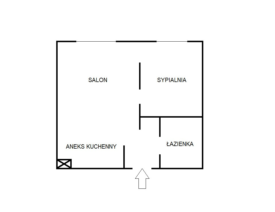 Położone na pierwszym piętrze, kompaktowe mieszkanie w powierzchni 32m2 składa się z: