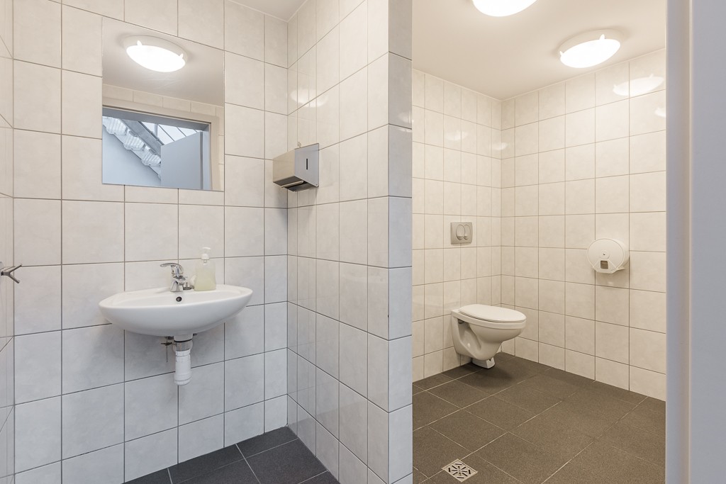 PIĘTRO – łączna powierzchnia do wynajęcia na tej kondygnacji to ok. 480 m2, obejmująca m.in. pomieszczenia biurowe, konferencyjne, socjalne i do obsługi klienta zewnętrznego o łącznej powierzchni ok. 130 m2; pomieszczenie produkcyjne o pow. ok. 193 m2 sąsiadujące z pomieszczeniem określanym dzisiaj jako laboratorium o pow. ok. 60 m2 (na tej kondygnacji pozostaną nie do wynajęcia pomieszczenia biurowe o łącznej pow. ok. 55 m2 – do ustalenia)