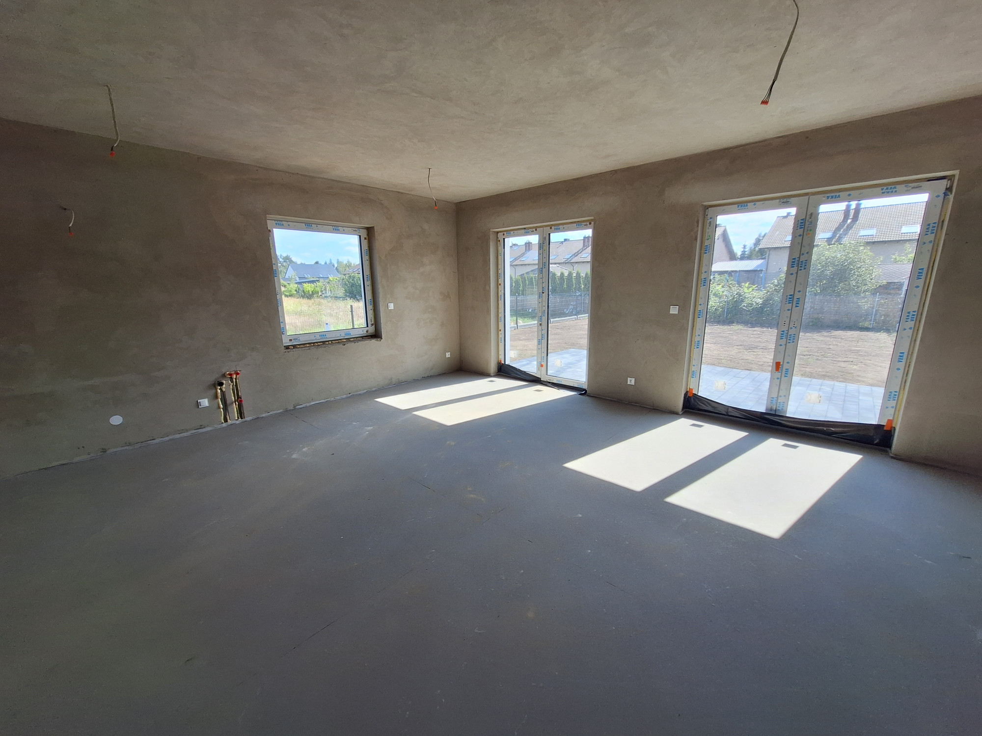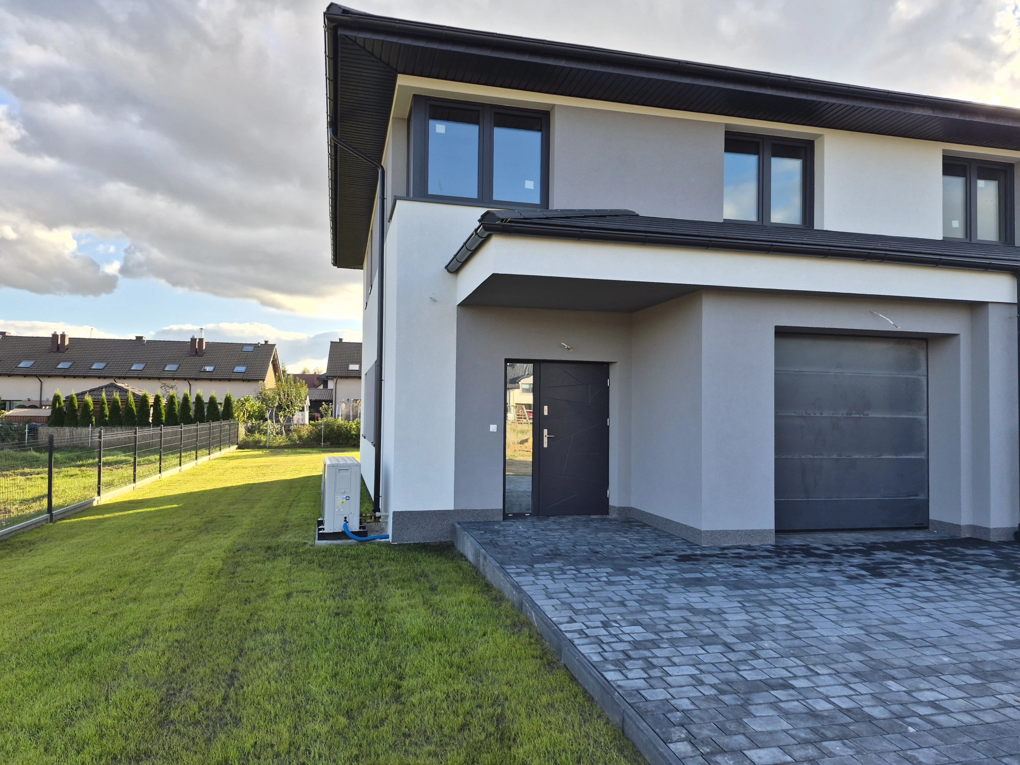 DOM BLIŹNIAK stan deweloperski z pompą ciepła. Położony w miejscowości Banino,  20 km od Gdańska.