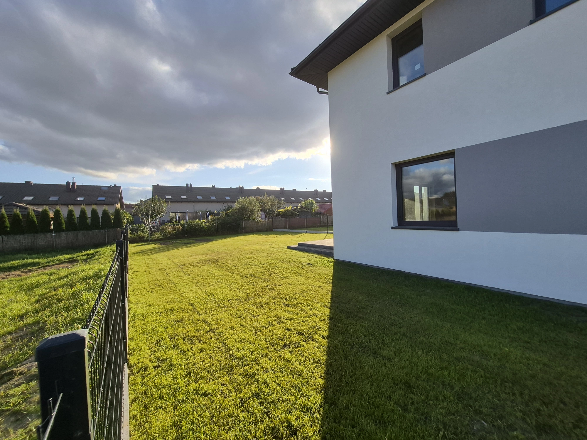 Dom  w zabudowie bliźniaczej został wybudowany w 2025r. Jest dwupoziomowy z garażem. Ogrzewanie – pompa ciepła De Dietrich.  Ogrzewanie podłogowe w całym domu, sterowane elektronicznie osobno dla każdego pomieszczenia. Okna trzy szybowe. Instalacja elektryczna przygotowana do podłączenia fotowoltaiki.