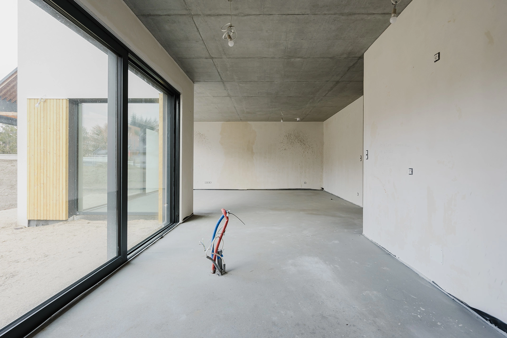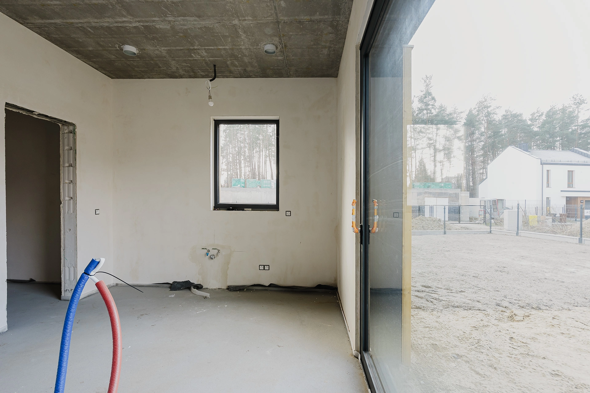 Do każdego domu przynależy ogród z tarasem, do którego dostaniesz się z kuchni, jak i z salonu przez nowoczesne, ciepłe witryny okienne, stanowiące niemal całą ścianę dziennej części budynku.