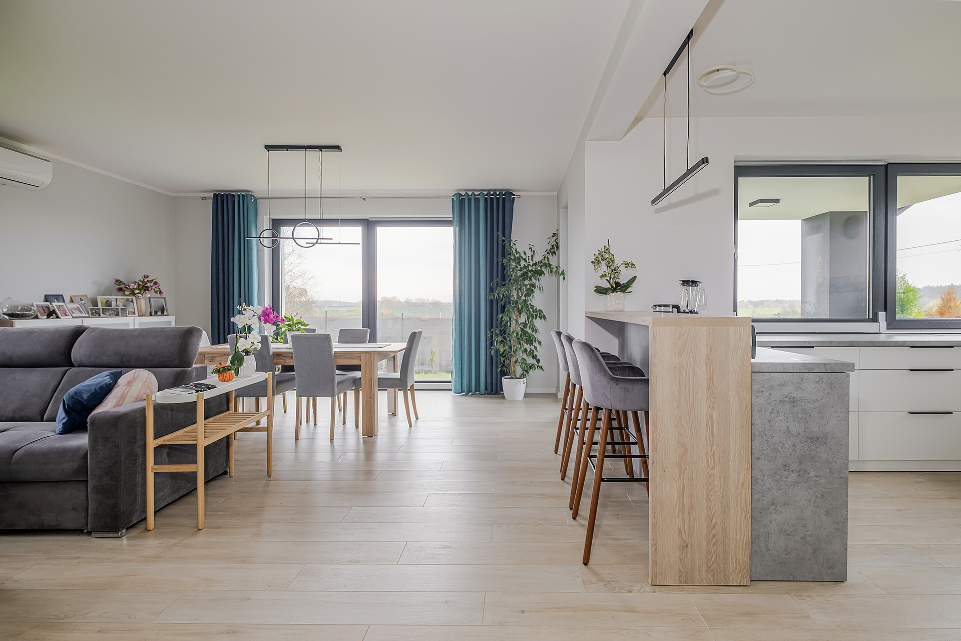 – salon z jadalnią i otwartą kuchnią,