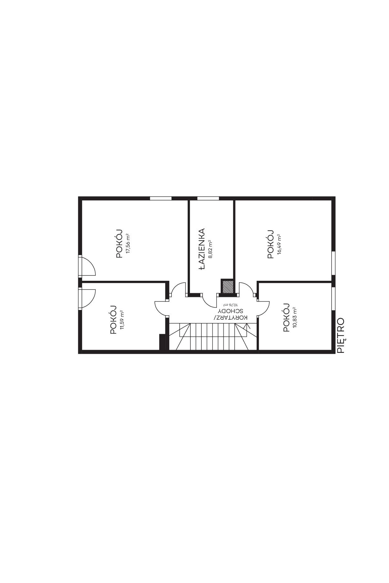 – 4 pokoje (17,56; 16,49; 11,59; 10,83 m/2)