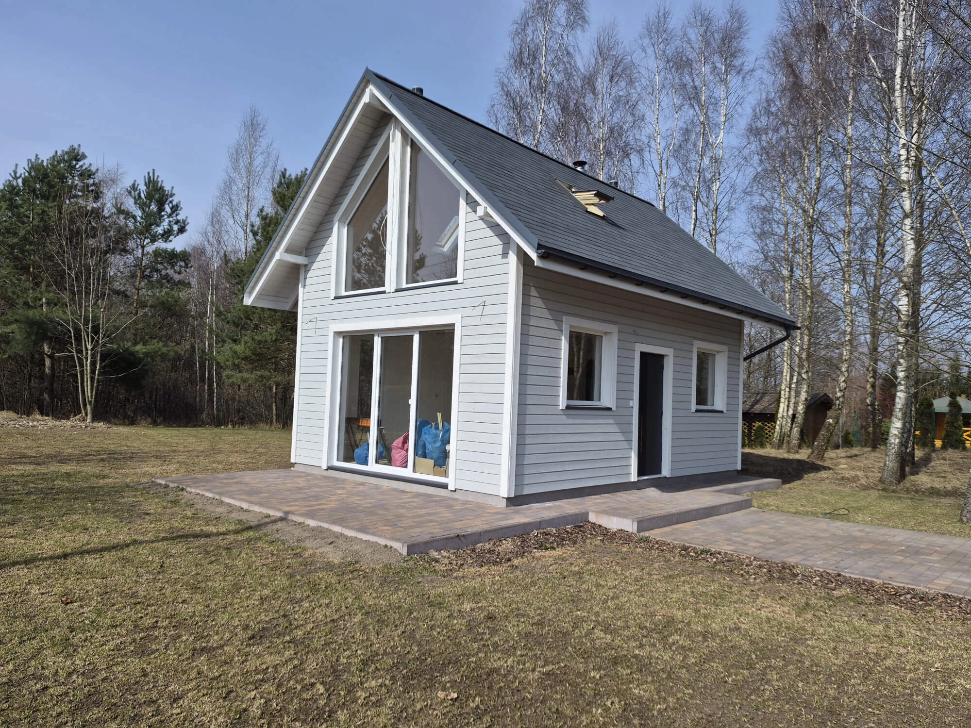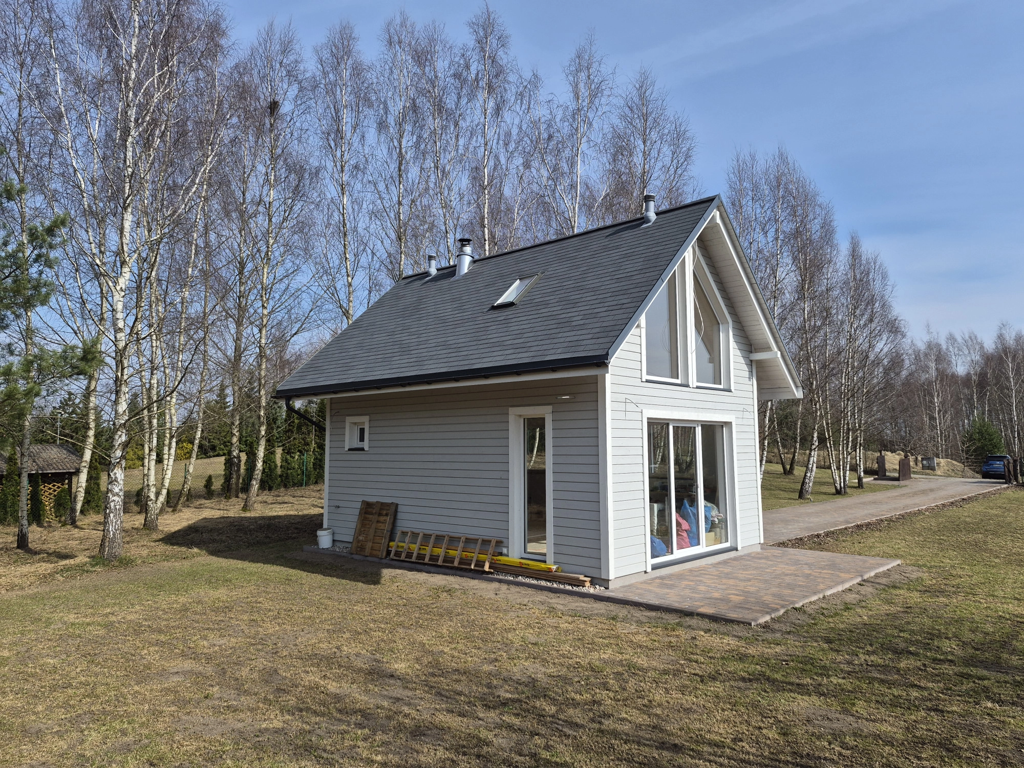 Domek letniskowy drewniany (ocieplony, całoroczny wykonany w systemie STEICO ) o powierzchni całkowitej około 57m2 wybudowany w 2025r. na działce 1577m2.