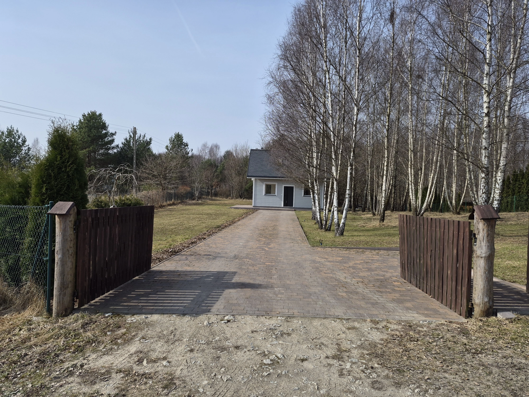 Działka  ogrodzona i zagospodarowana , podjazd w kostce brukowej.