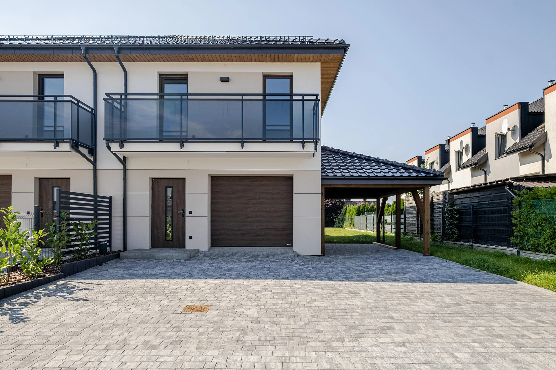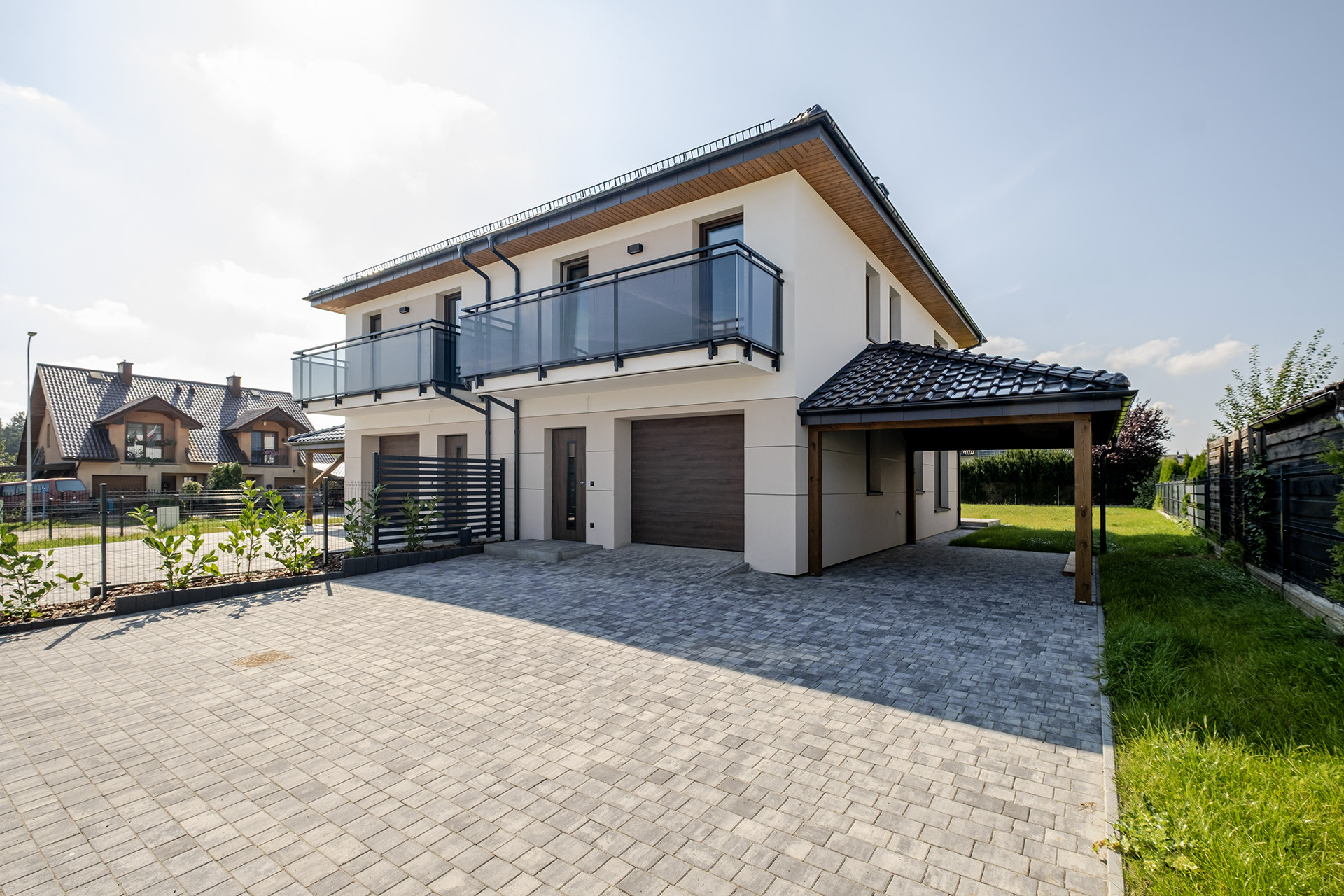 Nowy dom z garażem – słoneczny ogród