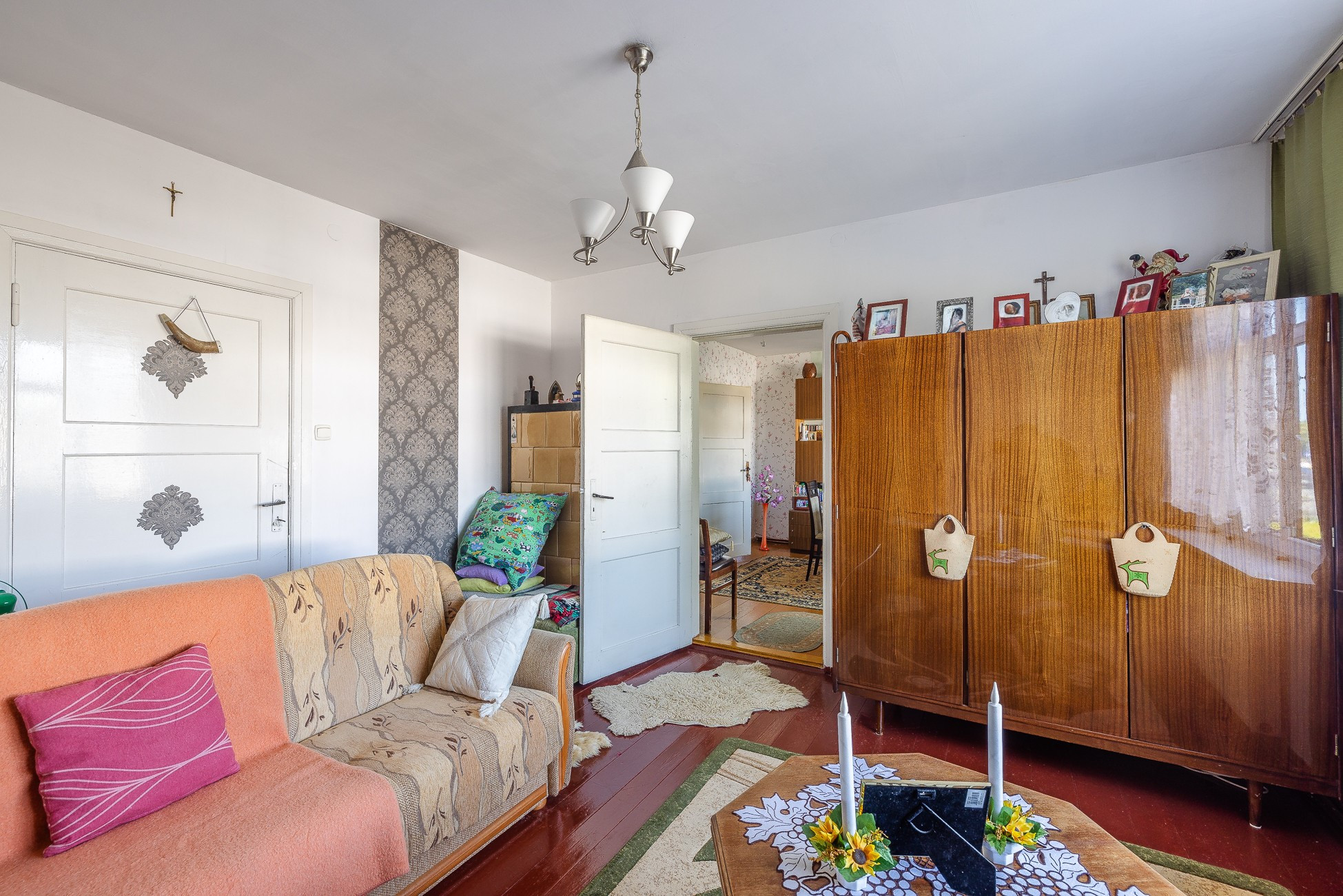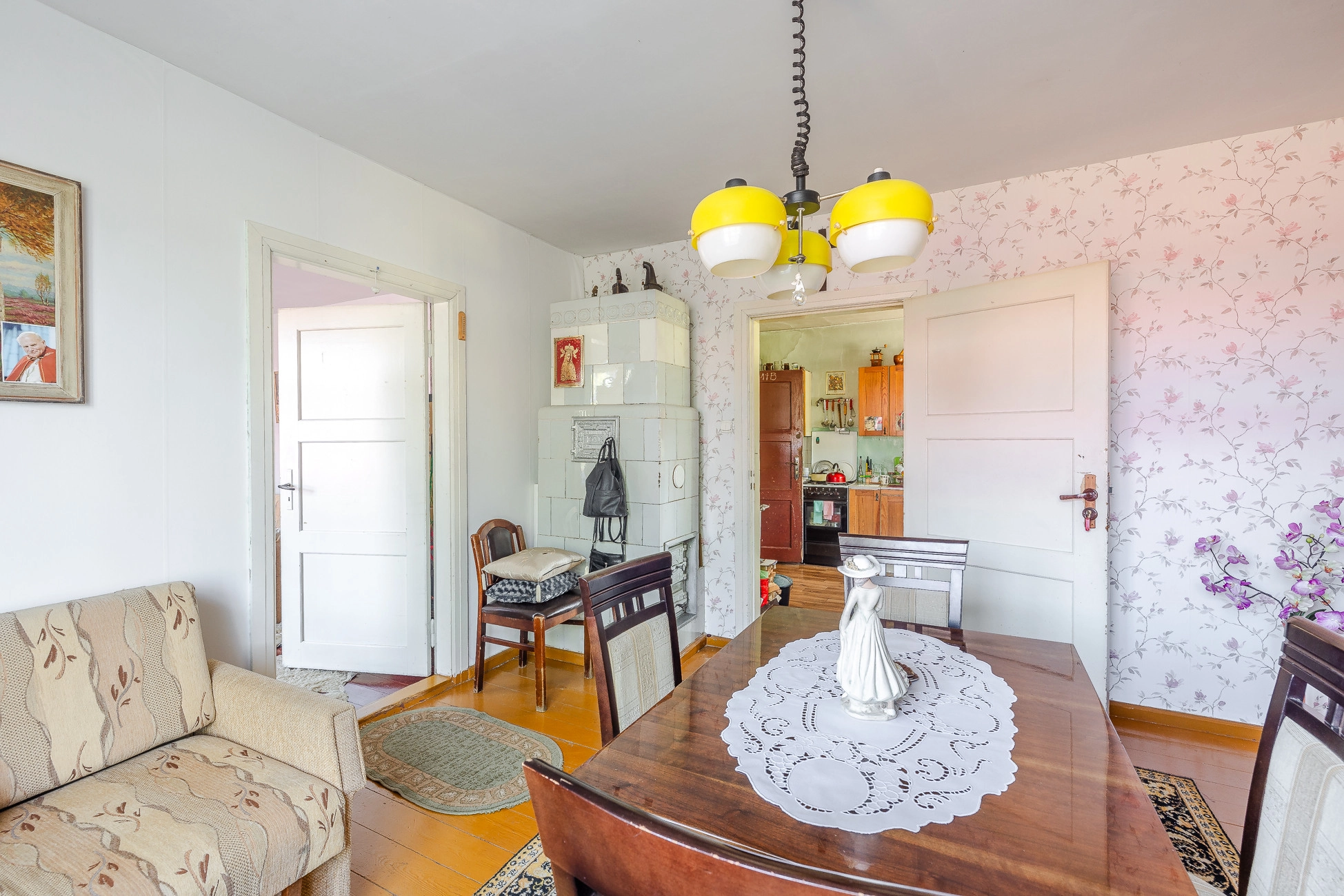 -Dom ogrzewany piecem na węgiel + istnieje możliwość dogrzewania piecami kaflowymi na parterze oraz na piętrze