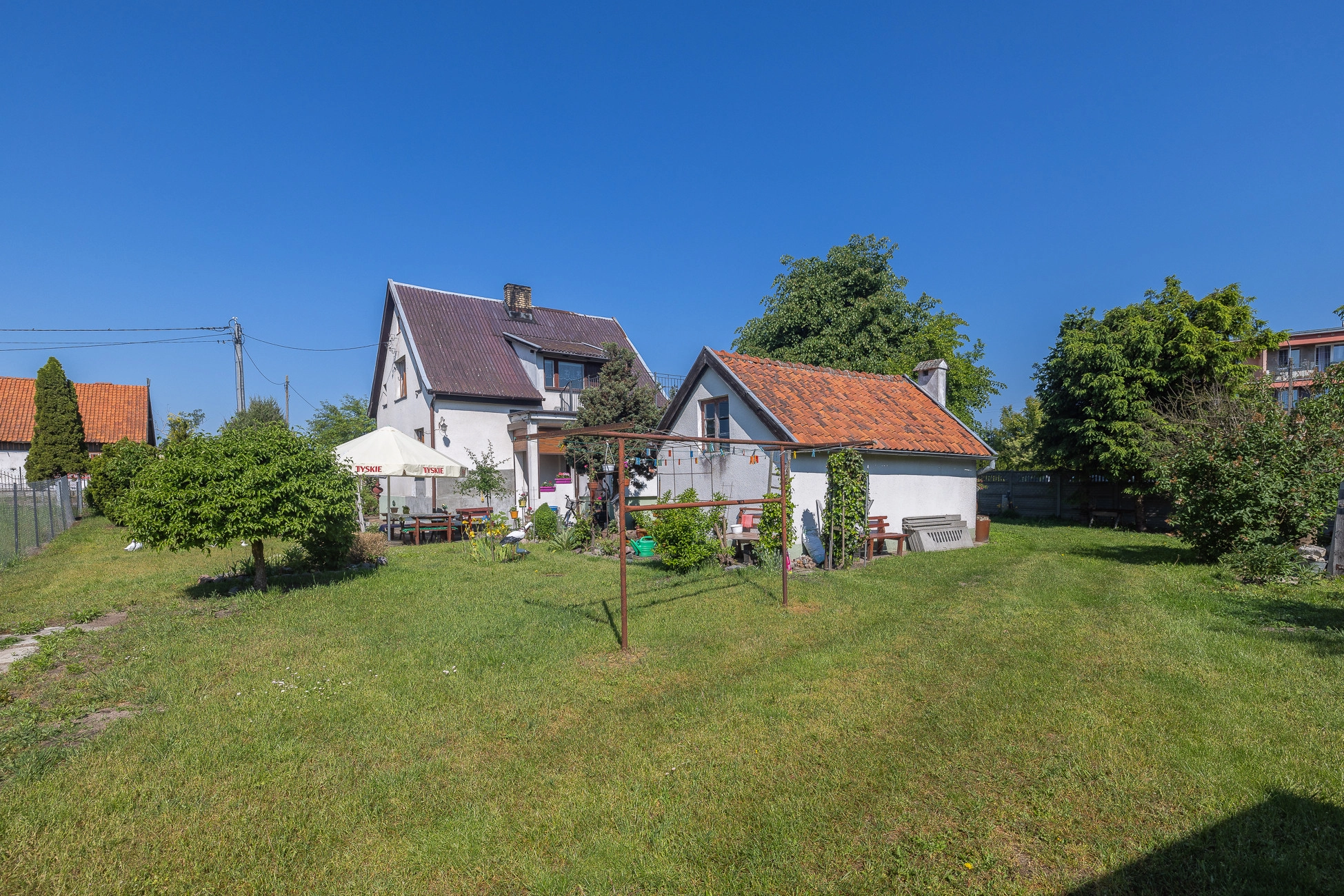 Budynek zlokalizowany na działce w kształcie trapezu, o powierzchni 1390m2, teren oznaczony w MPZP, jako: C-11MN (teren zabudowy mieszkaniowej jednorodzinnej). Dopuszcza się w granicy swojej działki prowadzenie działalności gospodarczej polegającej na obsłudze turystyki (wynajem pokoi dla letników, handel, gastronomia itp.). Dojazd do działki drogą asfaltową. Teren płaski, ogrodzony z 3 stron, brama wjazdowa i ogrodzenie metalowe. Na działce dodatkowo znajduje się: