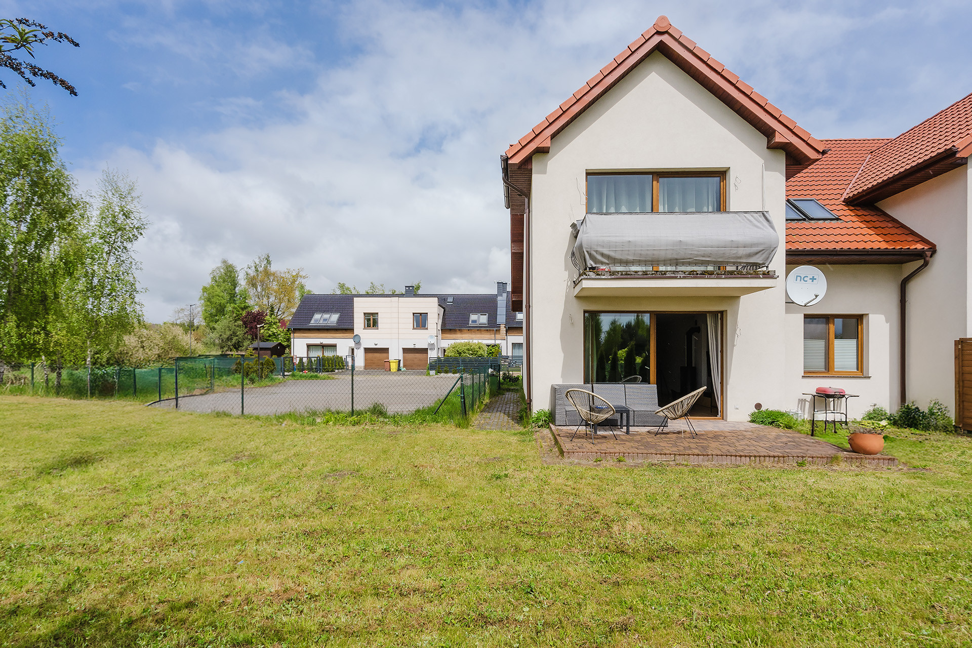 Mieszkanie znajduje się na parterze w dwukondygnacyjnym skrajnym budynku szeregowym z 2017 roku. Kameralna zabudowa oraz bliskość natury czynią to miejsce wyjątkowo komfortowym do życia. Do budynku doprowadzone wszystkie media: prąd, gaz, kanalizacja, światłowód. Droga dojazdowa z płyt betonowych.