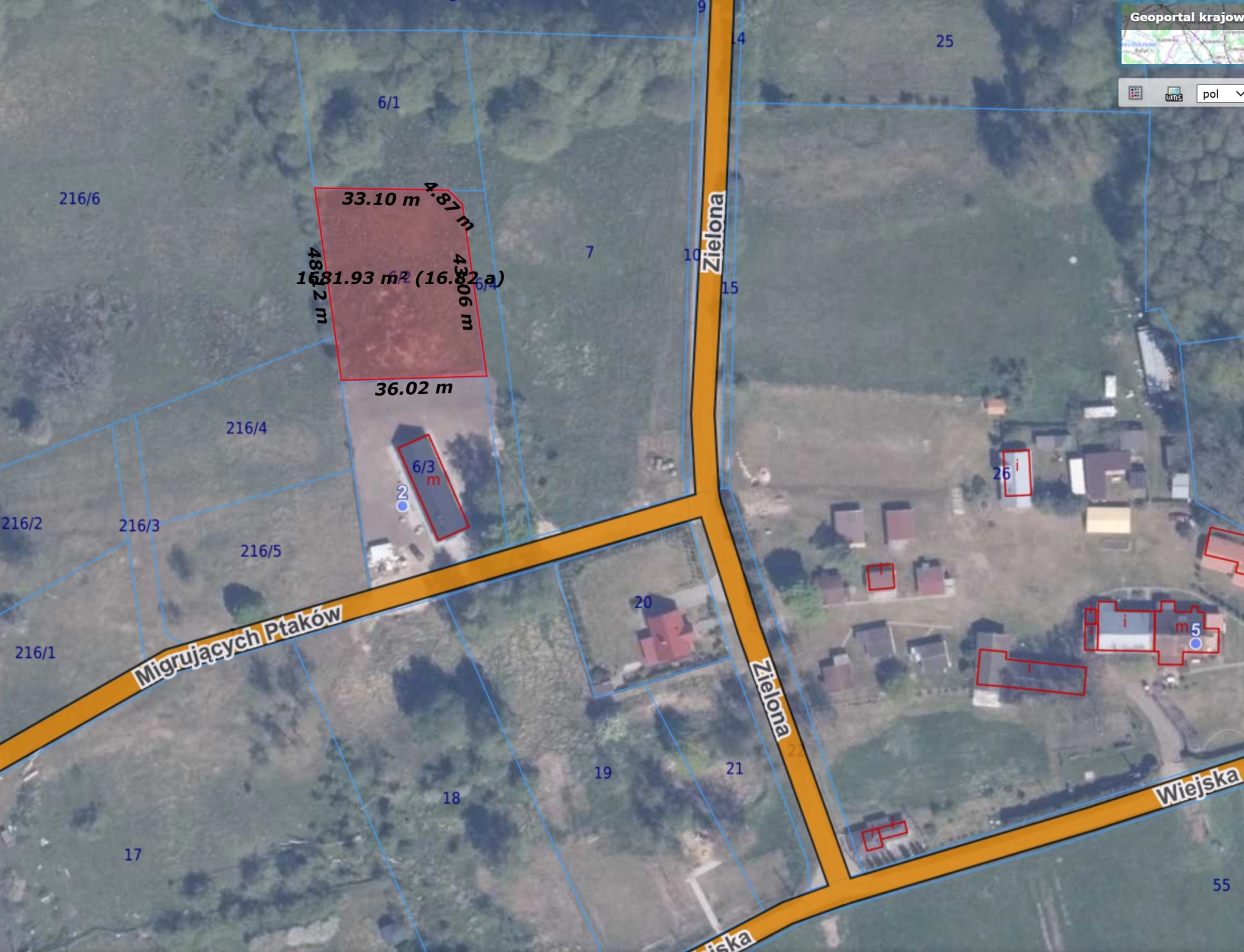 – działka 6/2 o pow. ok 1673m2 w cenie 310 000 zł