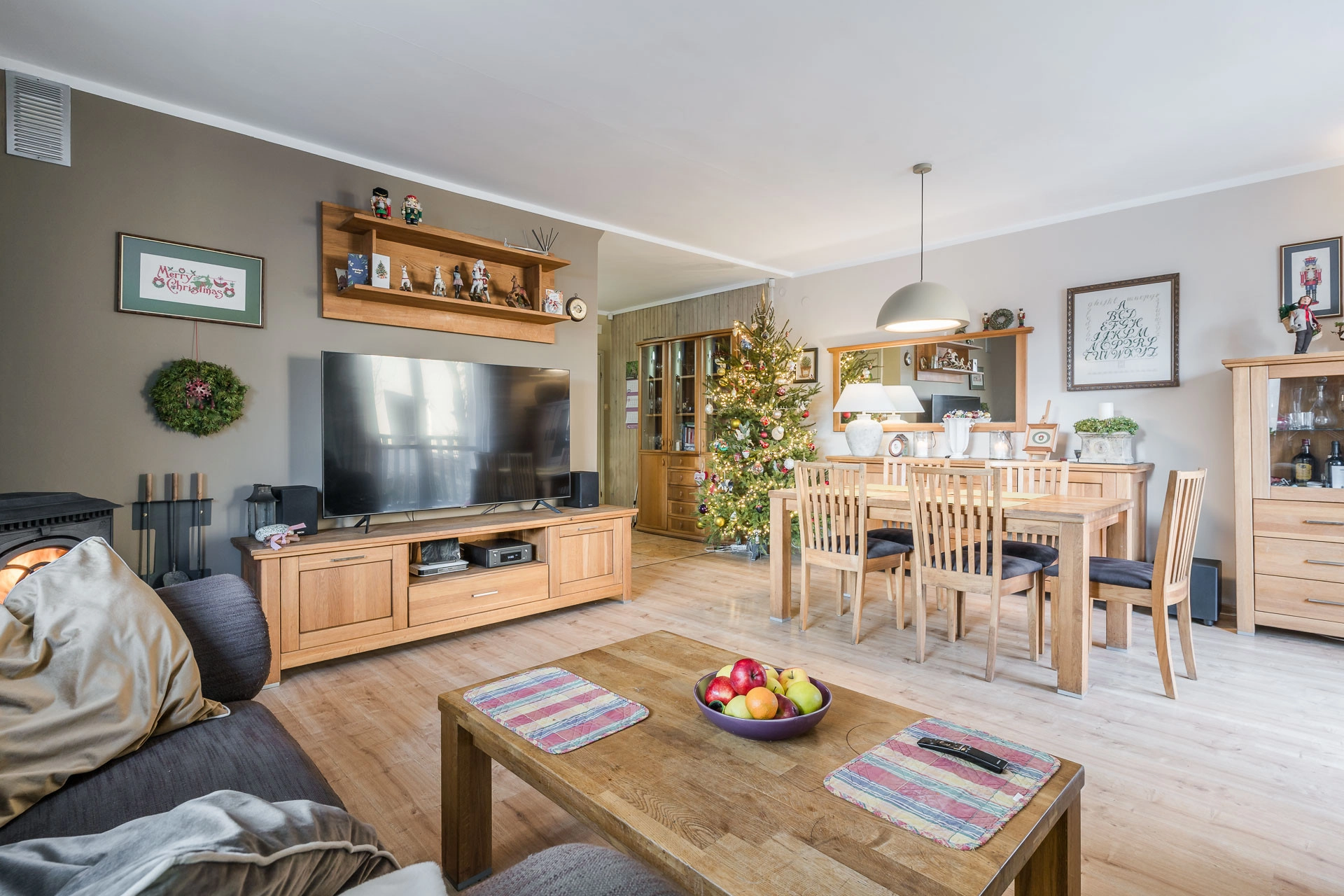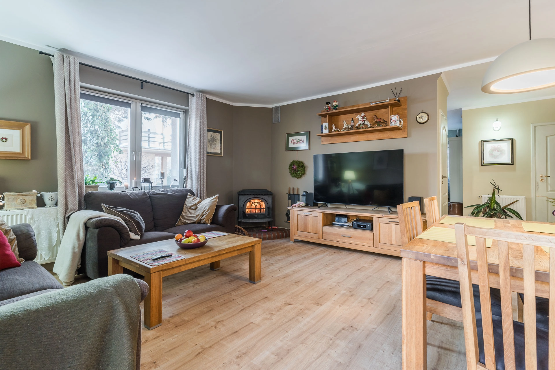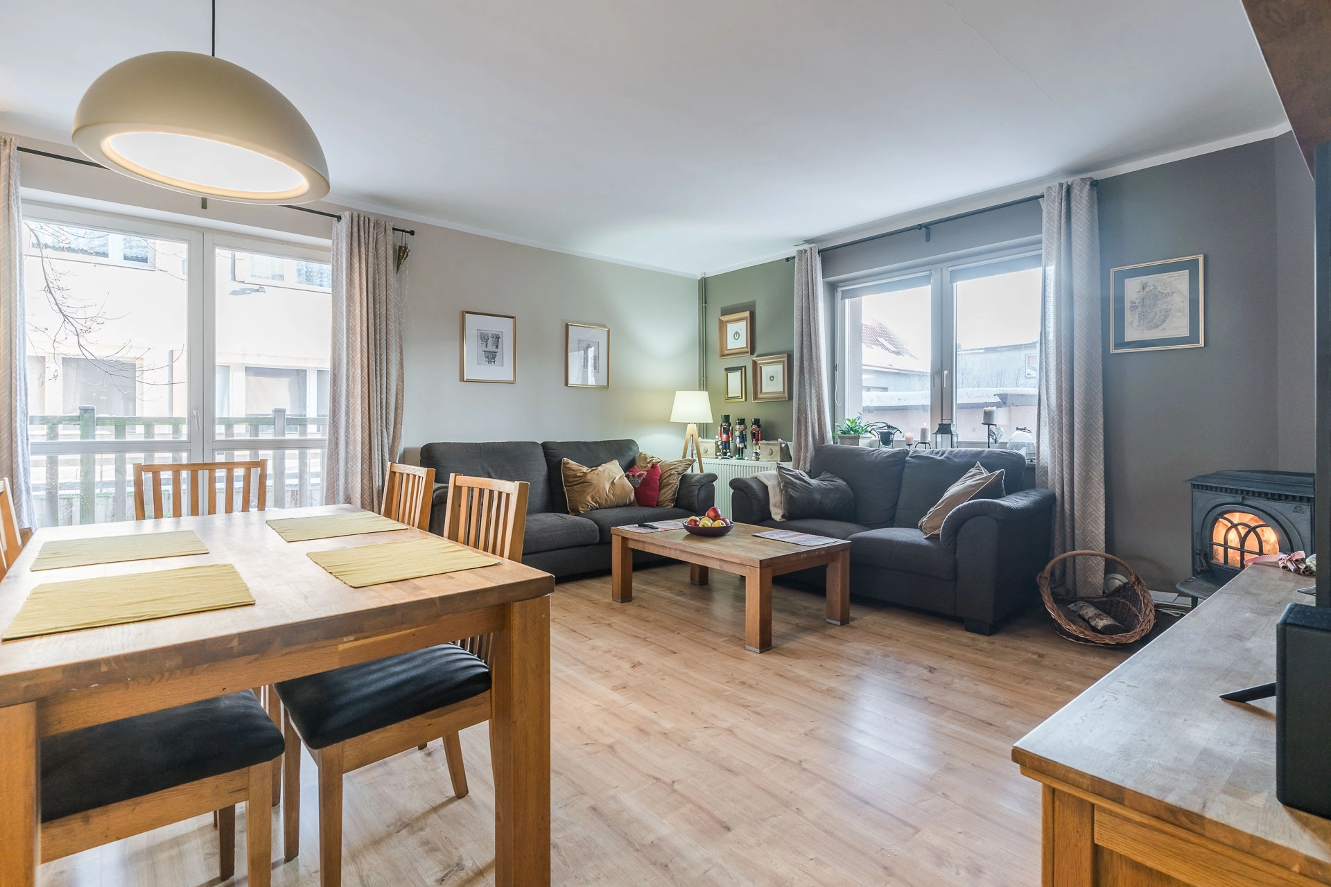 -Salon z kominkiem i wyjściem na taras