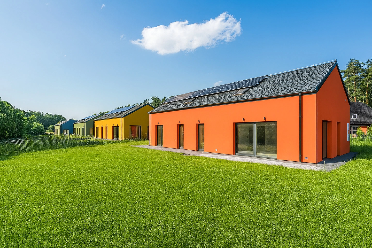 Domy są ogrzewane pompą ciepła Cooper & Hunter. Na południowych częściach dachu są położone panele fotowoltaiczne. Ogrzewanie jest podłogowe.