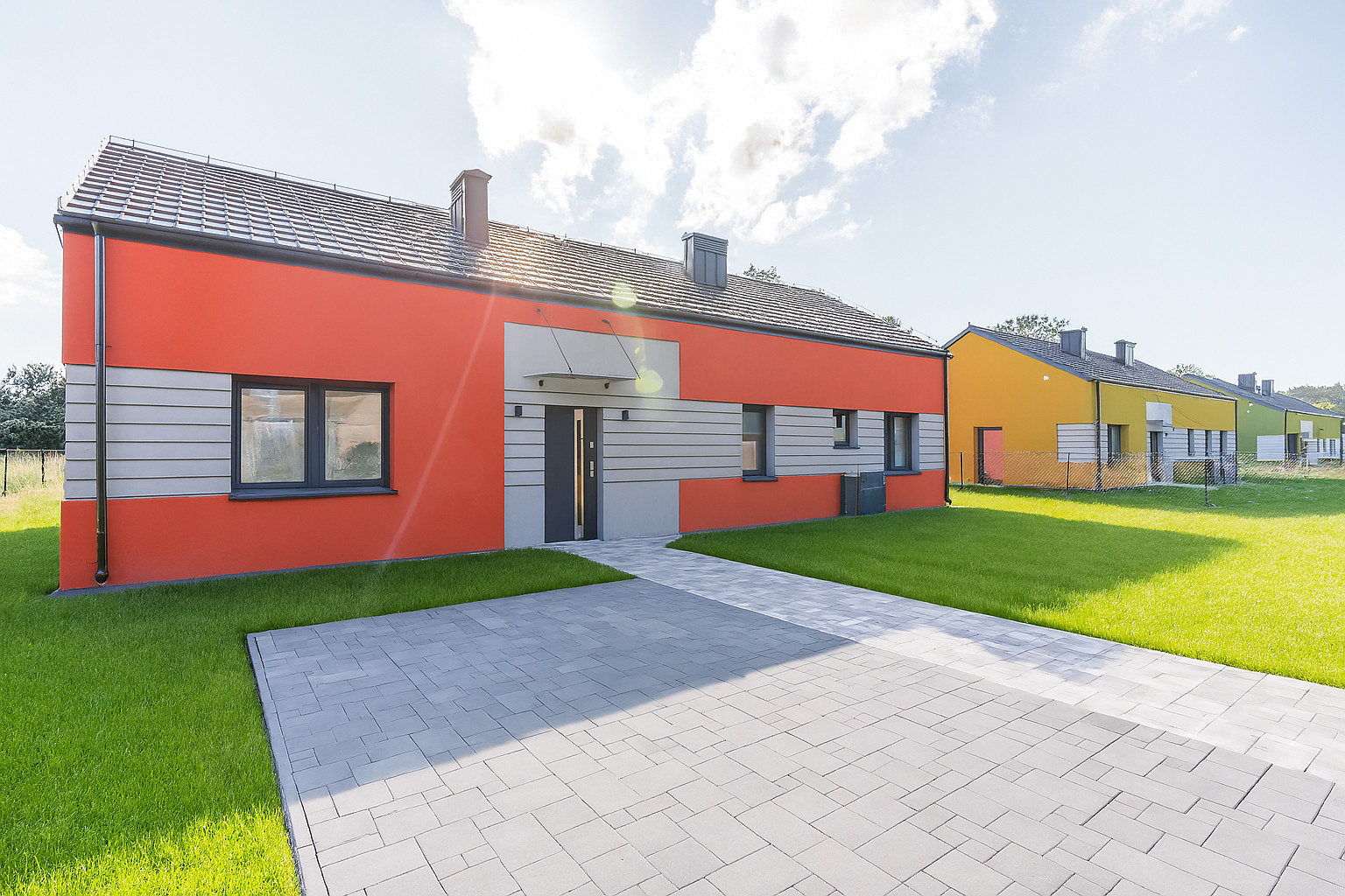 Do wyboru są 3 domy o powierzchni 156m2 w różnych kolorach. Układ w każdym jest taki sam a różnice polegają jedynie w działkach oraz kolorach elewacji.