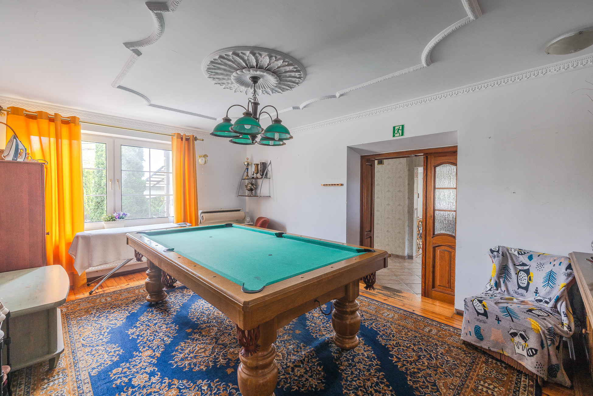 Na parterze budynku znajduje się restauracja, wyposażone zaplecze kuchenne, zaplecze sanitarne, salonik bilardowy, cztery pokoje oraz taras na zewnątrz budynku.