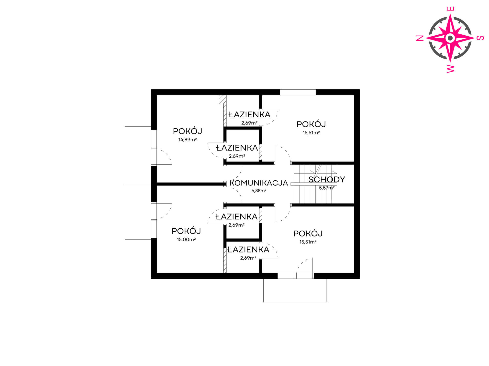 Całość do własnej aranżacji, gdzie możesz zrobić możesz zrobić dodatkowe pokoje.