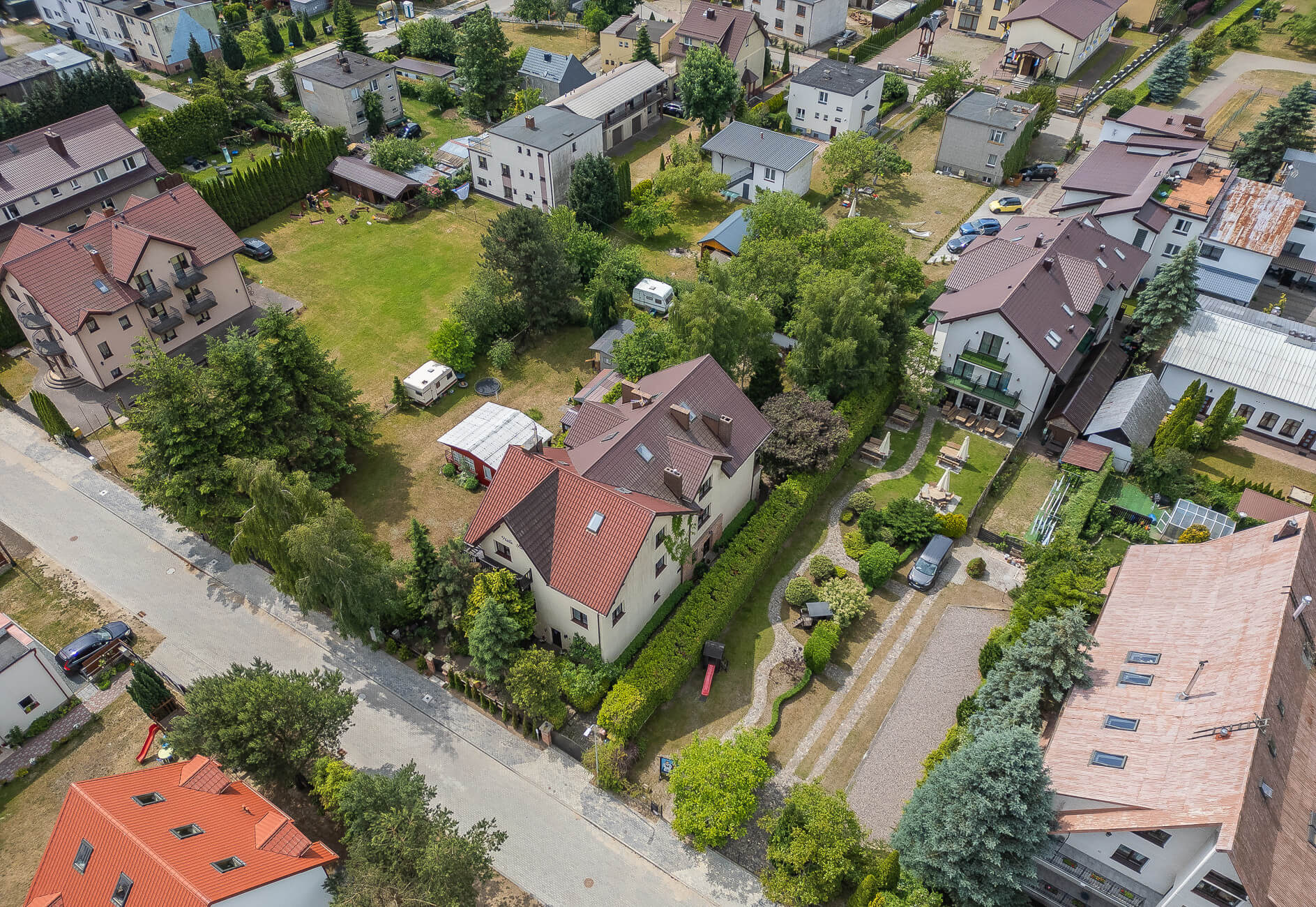 3 piętrowy dom z poddaszem, który powstał w 2005 roku z pustaka na prostokątnej działce 848 m2. W budynku znajduję się piec olejowy z dużym zbiornikiem w piwnicy, który ogrzewa wodę oraz dom. Dookoła znajduję się ogrodzenie drewniane oraz żywopłot. Na działce znajdują się miejsca do grillowania oraz wypoczynku.