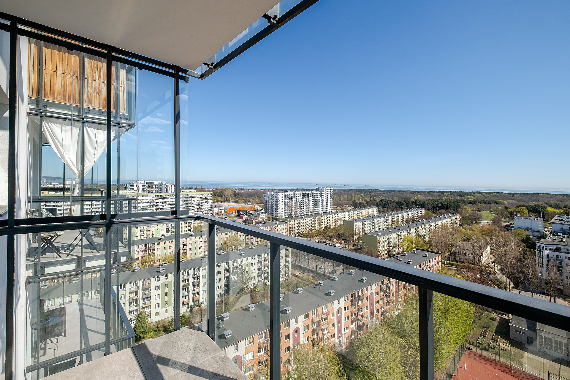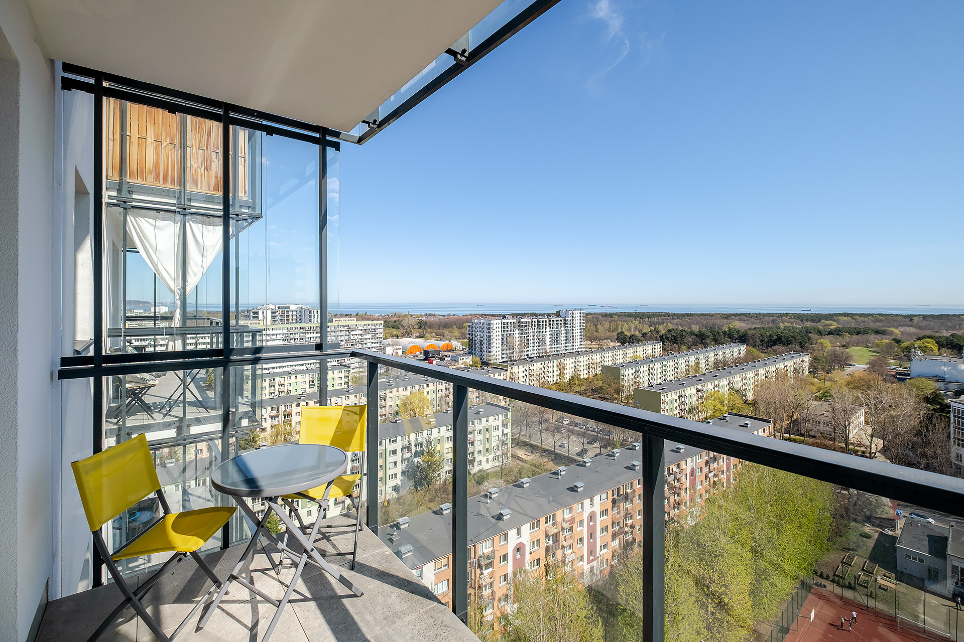 Oferujemy komfortowe mieszkanie położone na 14. piętrze, z którego rozpościera się spektakularny widok na Zatokę Gdańską. Przestronny balkon stanowi idealne miejsce do relaksu i podziwiania nadmorskiego krajobrazu. Wysokie piętro zapewnia nie tylko niezakłóconą perspektywę, ale także doskonałe doświetlenie wnętrza i poczucie przestrzeni.
