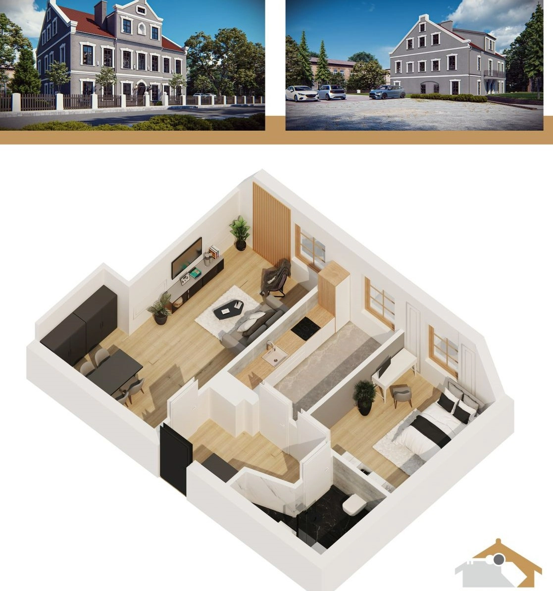 Na sprzedaż apartament  o powierzchni 42,08 m2 znajdujący się na drugim piętrze.