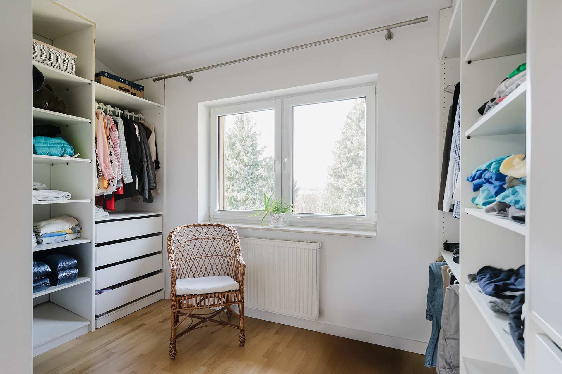 * Główna sypialnia (21,2 m²) z wydzieloną garderobą.