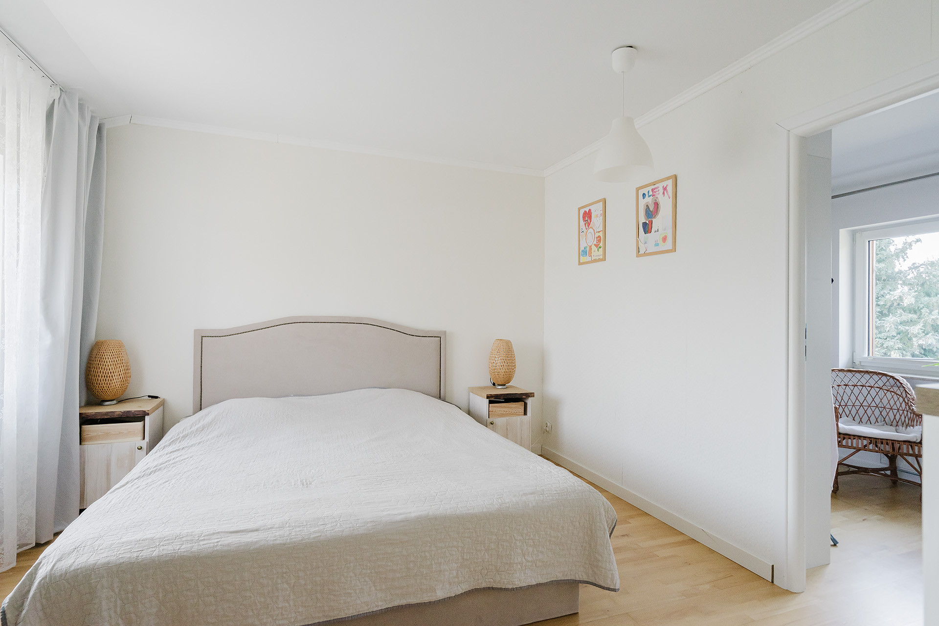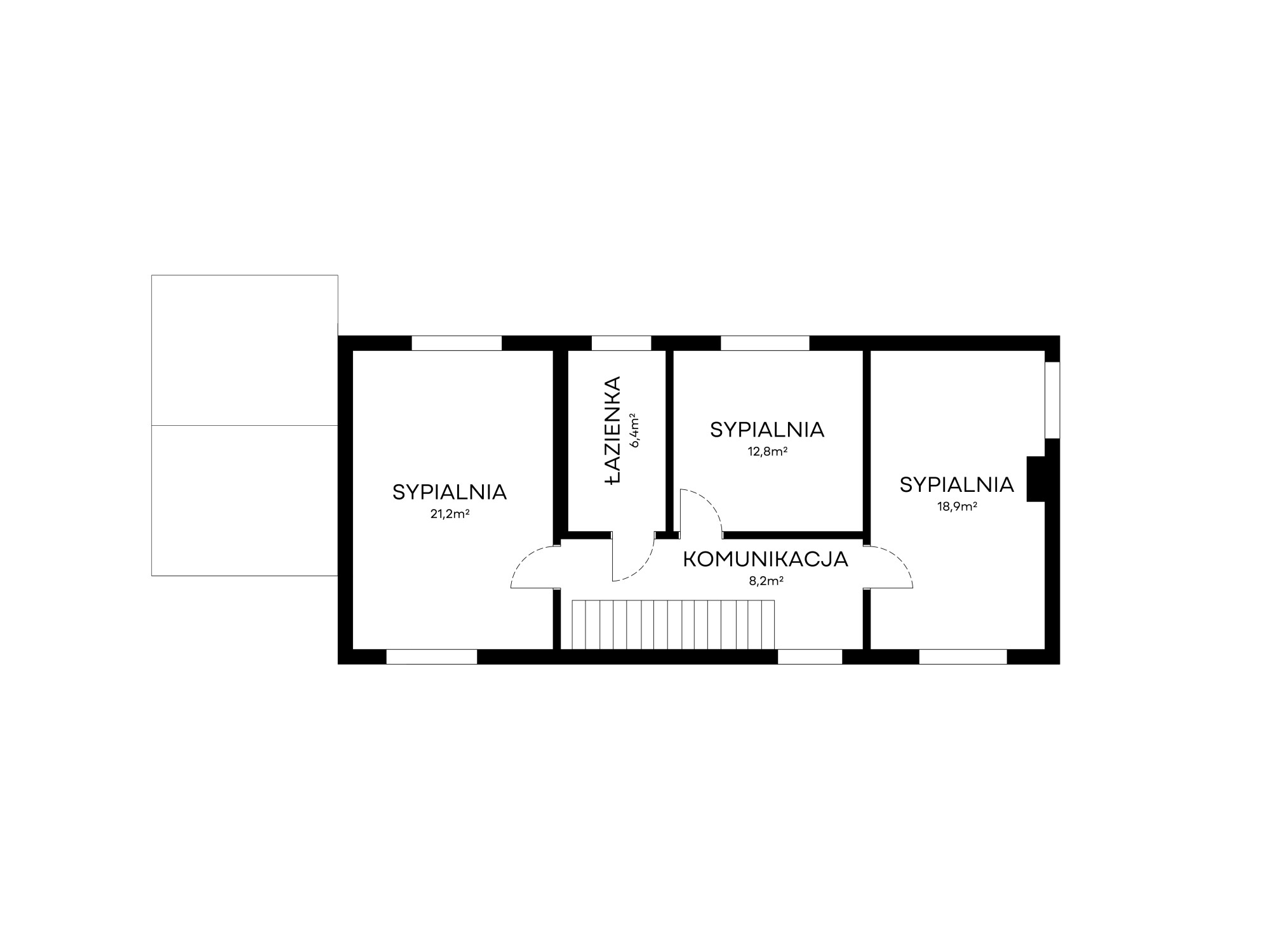 * Duża sypialnia (18,9 m²) – obecnie podzielona na dwa niezależne pokoje, ale można przywrócić pierwotny układ.