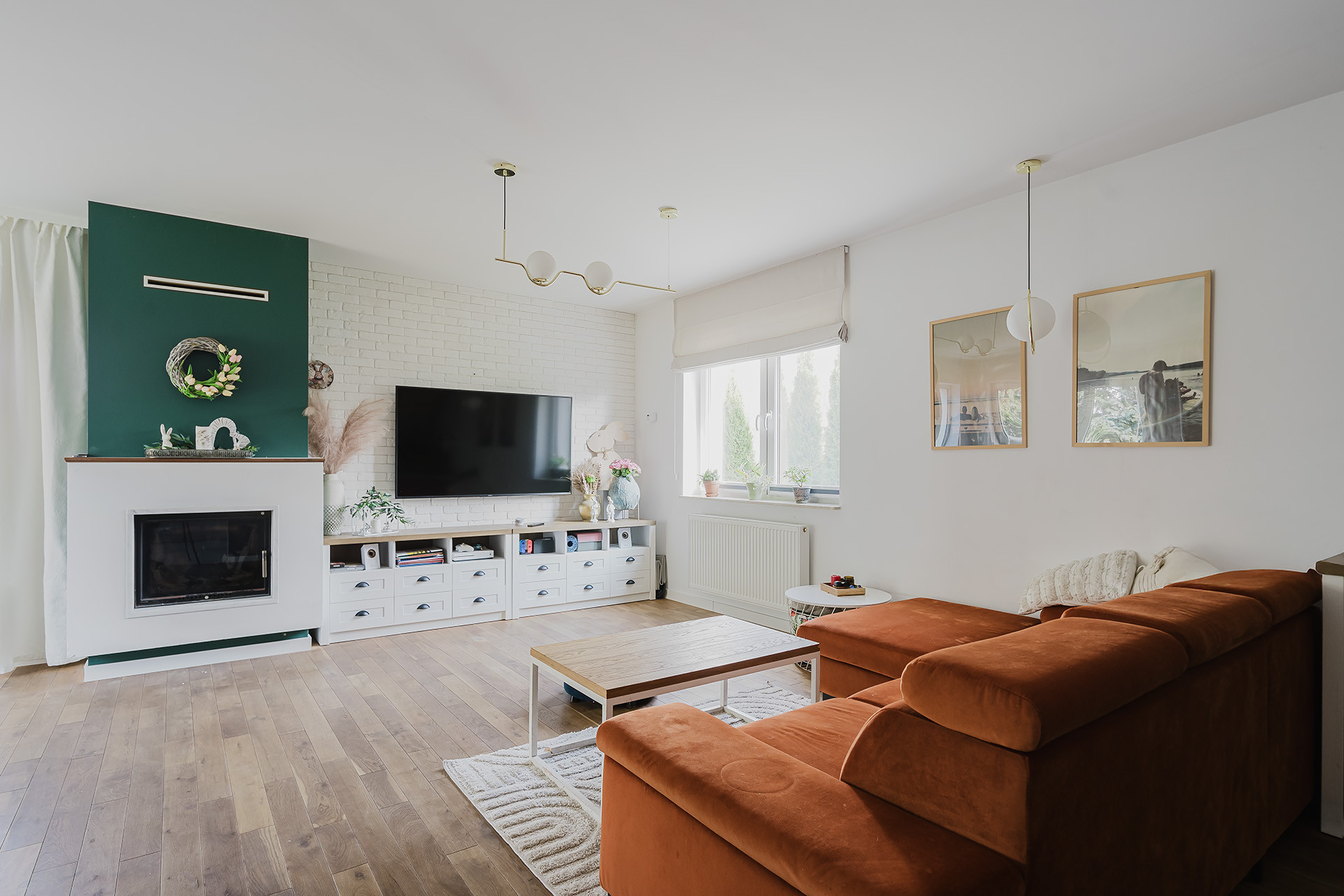 ✅ Dwa źródła ogrzewania – piec gazowy dwufunkcyjny + kominek z rozprowadzeniem ciepła.