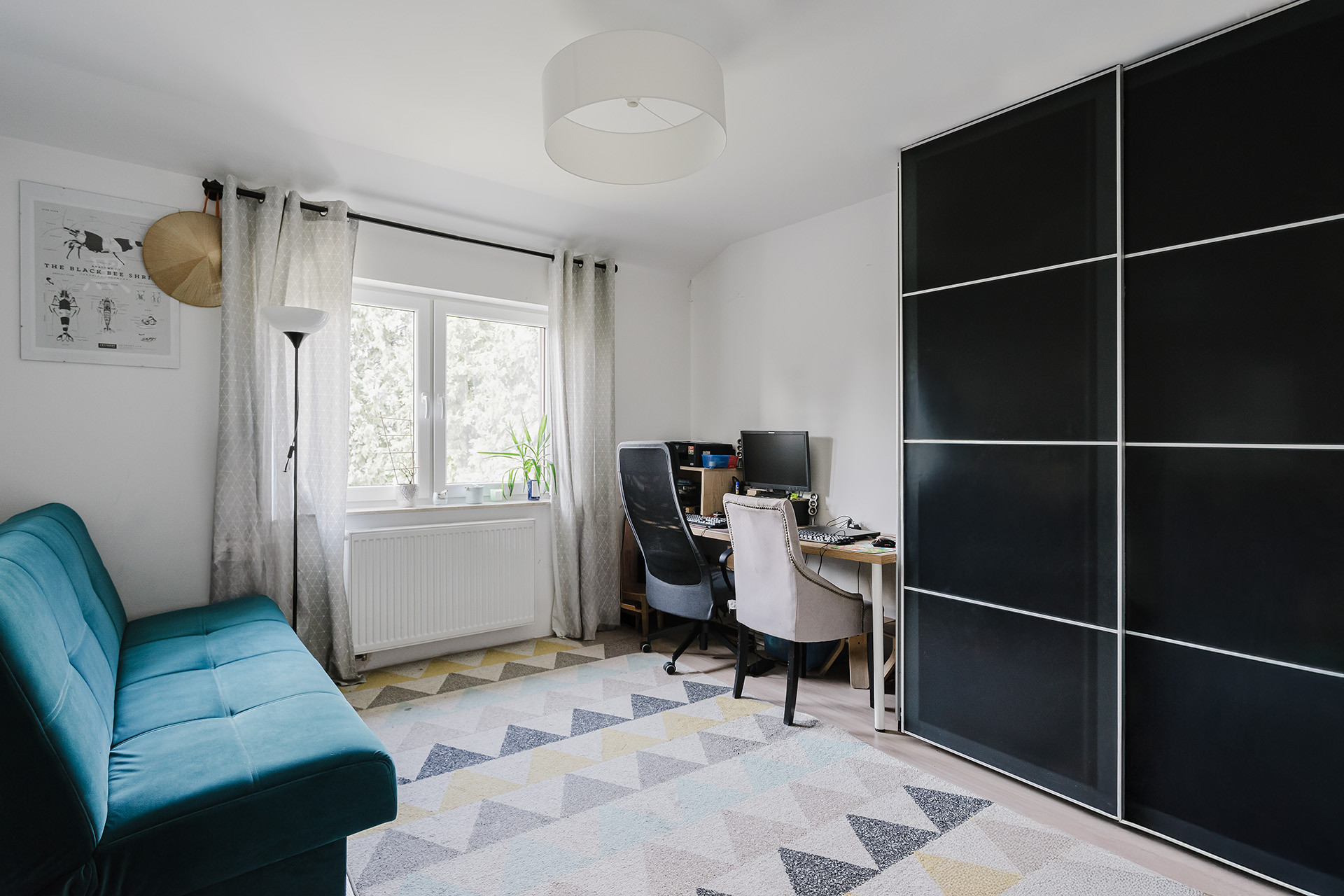 * Sypialnia/gabinet (12,8 m²) – idealne miejsce do pracy.