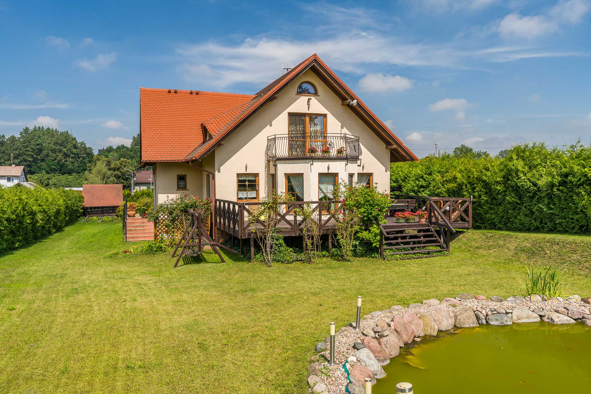Prawdziwą perełką tej nieruchomości jest urokliwe oczko wodne, które podkreśla sielski charakter ogrodu i stanowi doskonałe miejsce do wypoczynku. To miejsce to prawdziwa oaza spokoju, stworzona z myślą o osobach ceniących sobie kontakt z przyrodą…