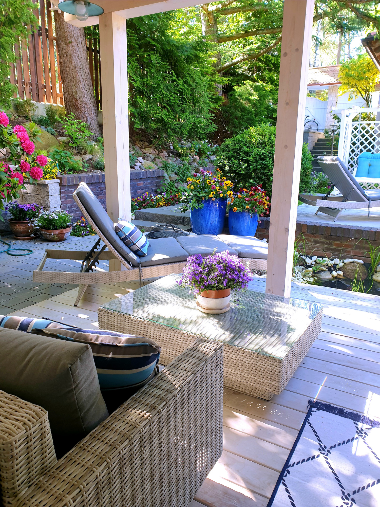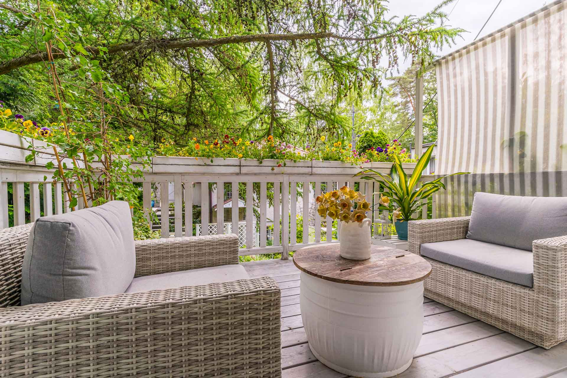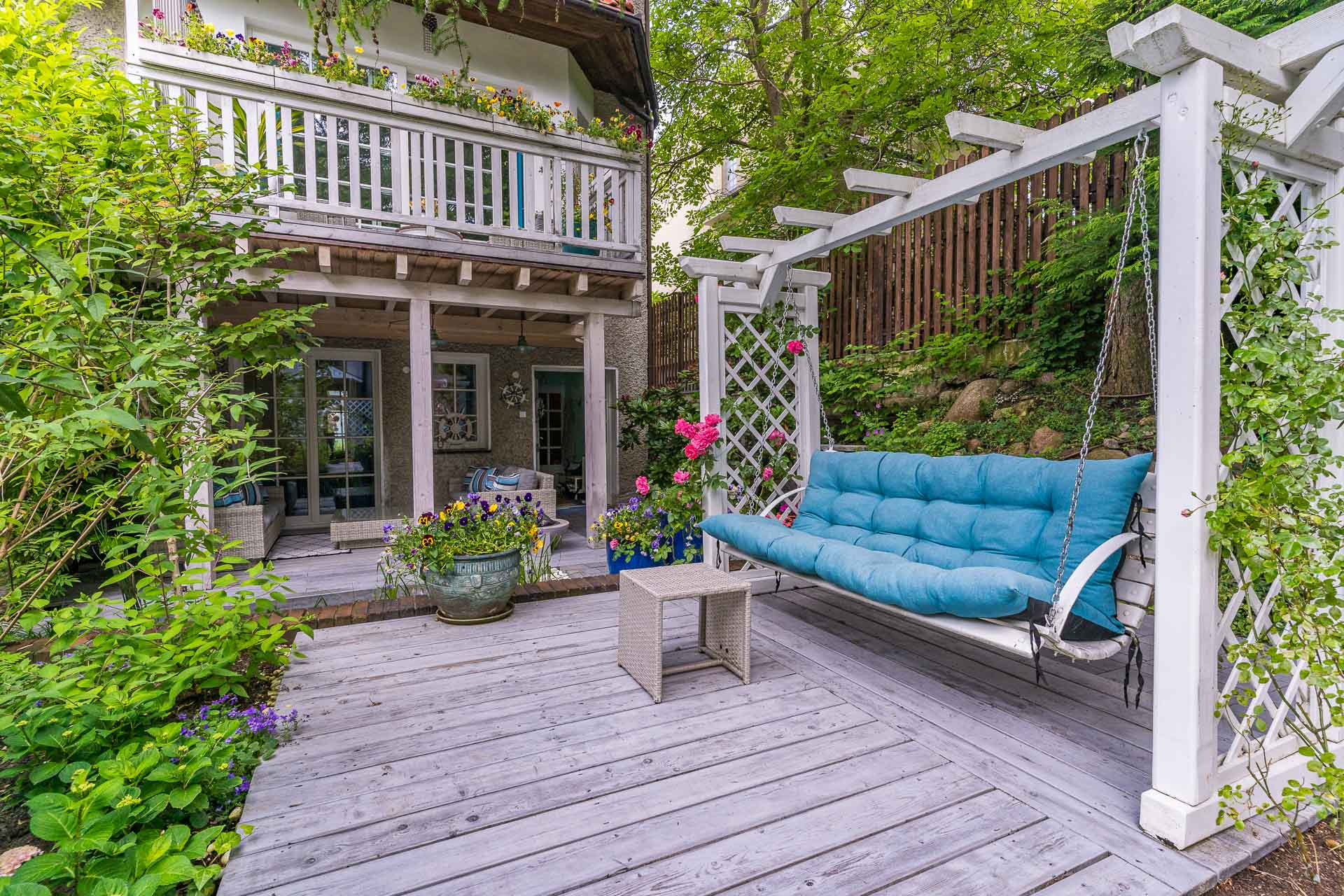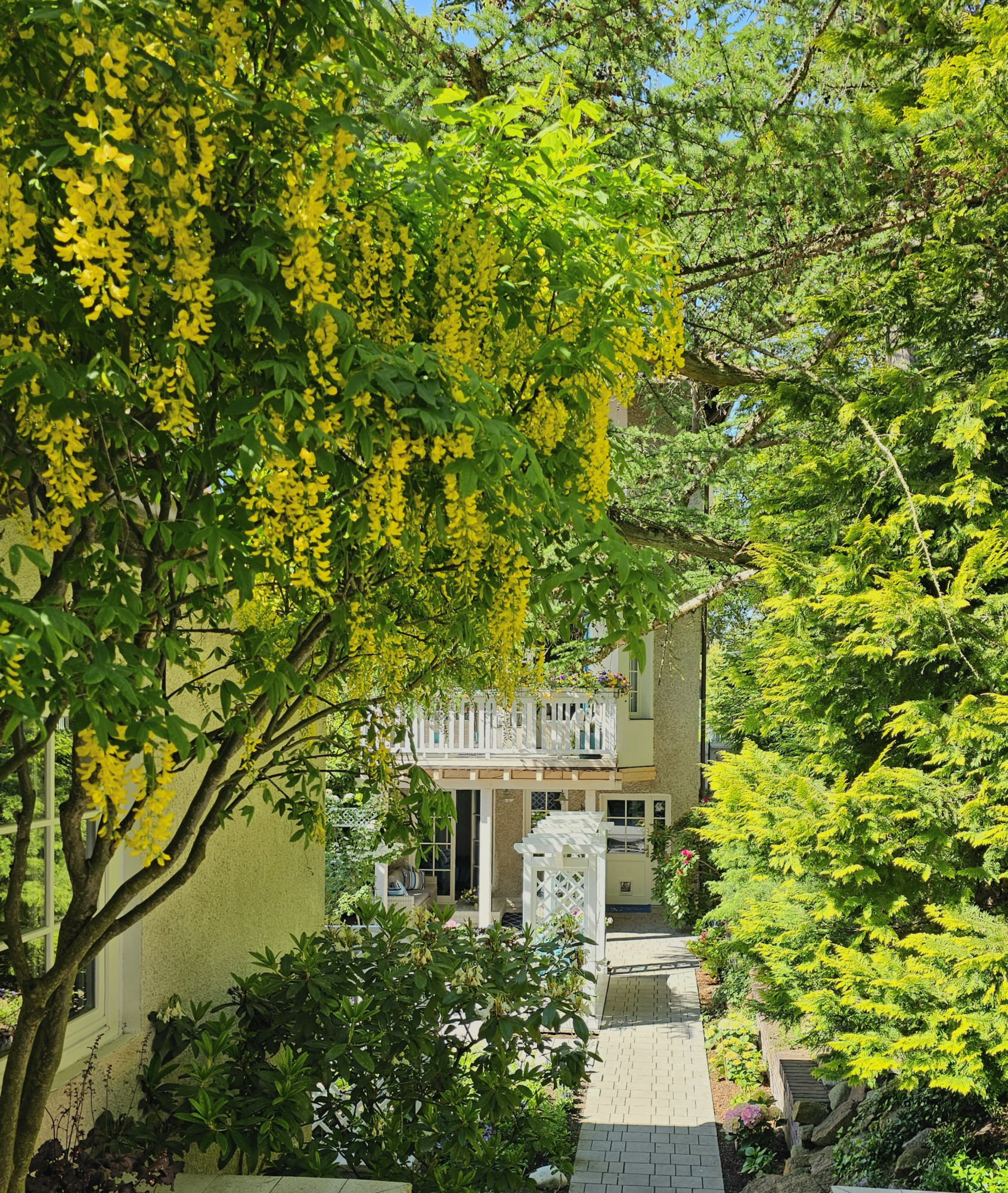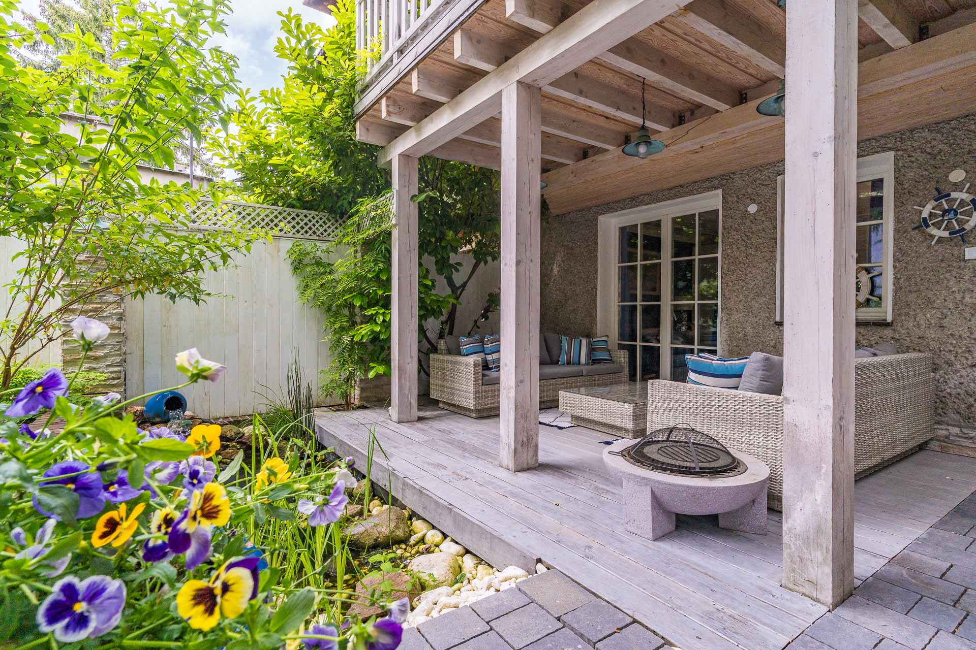 Niebywałym atutem całej nieruchomości jest jej magiczny ogród przenoszący nas w inny, spokojny świat. Szum niewielkiej fontanny w oczku wodnym, modrzewiowych gałęzi, czy krzewu rododendronu, to tylko niektóre elementy, które z pewnością przykują uwagę odwiedzających. Całość o lekko nachylonym, kaskadowym układzie, co dodatkowo podkreśla wyjątkowość znajdujących się tam kompozycji przestrzennych. W takim miejscu nie sposób się nie zrelaksować i zapomnieć o troskach życia codziennego – tutaj chcąc nie chcąc się odpoczywa!