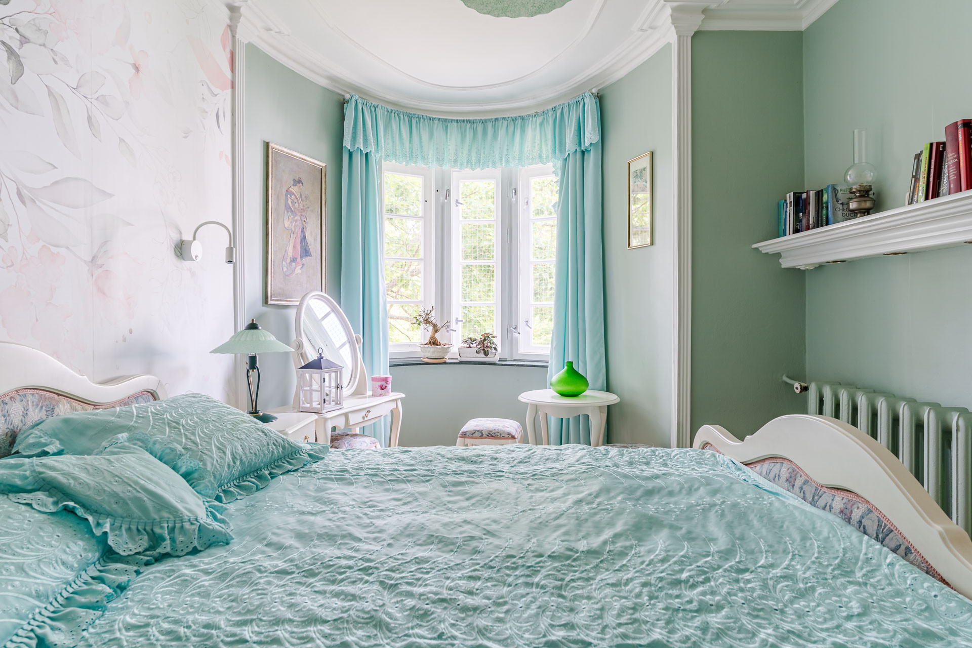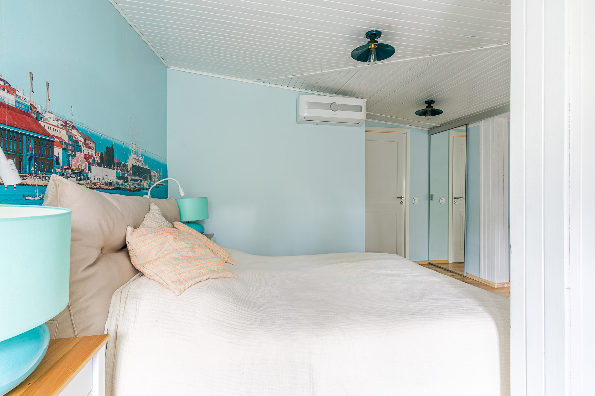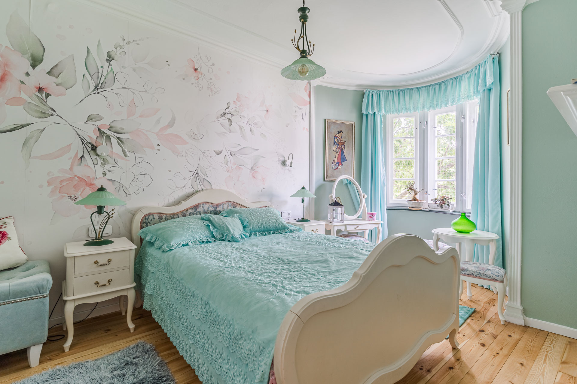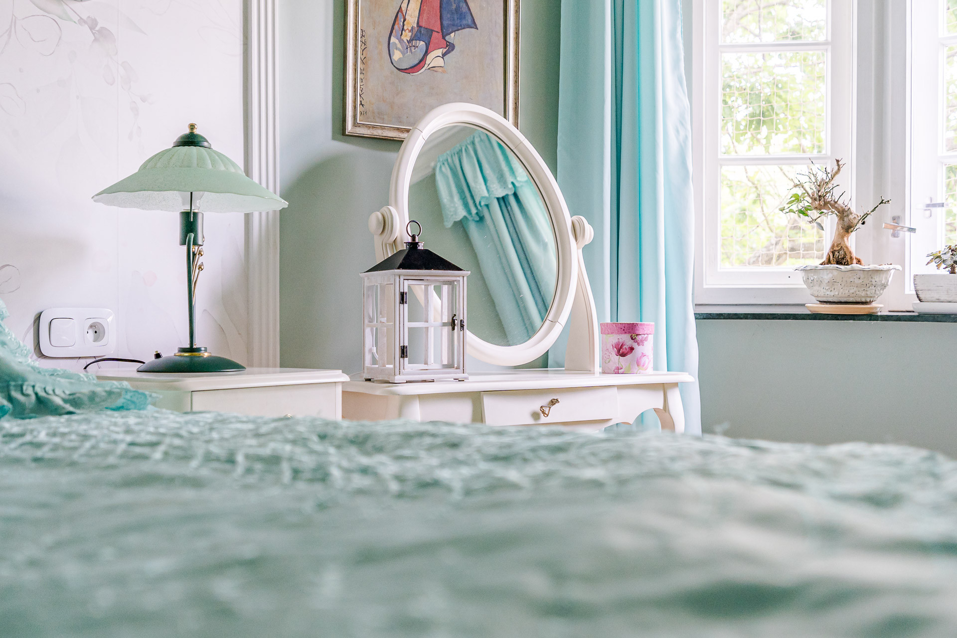 – pokój (17,40 m2) z wyjściem na taras, gdzie możemy zrelaksować się przy szumie wody z oczka wodnego jednocześnie podziwiając ogrodową roślinność,