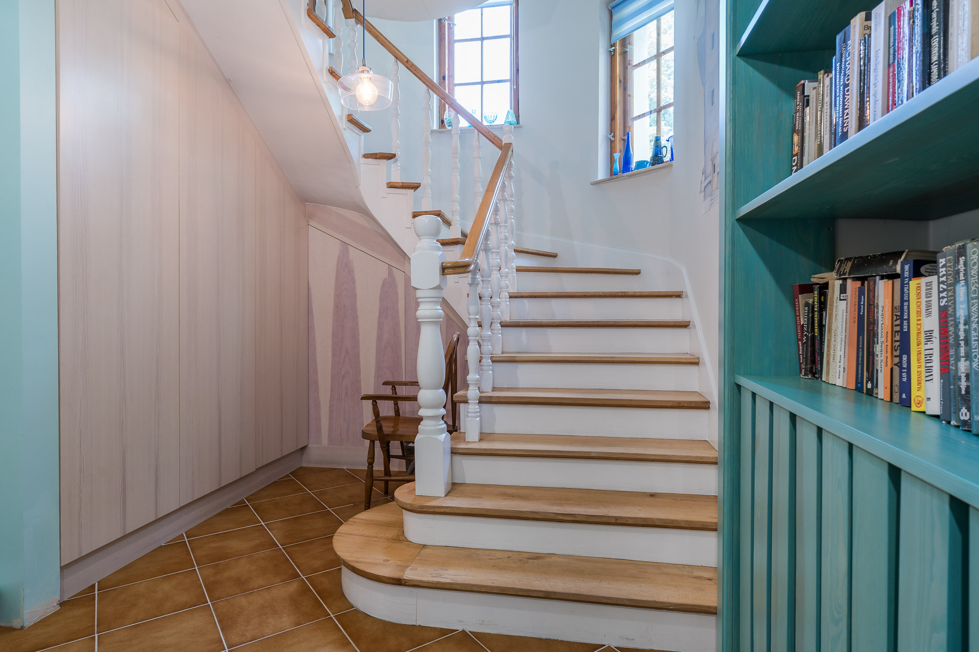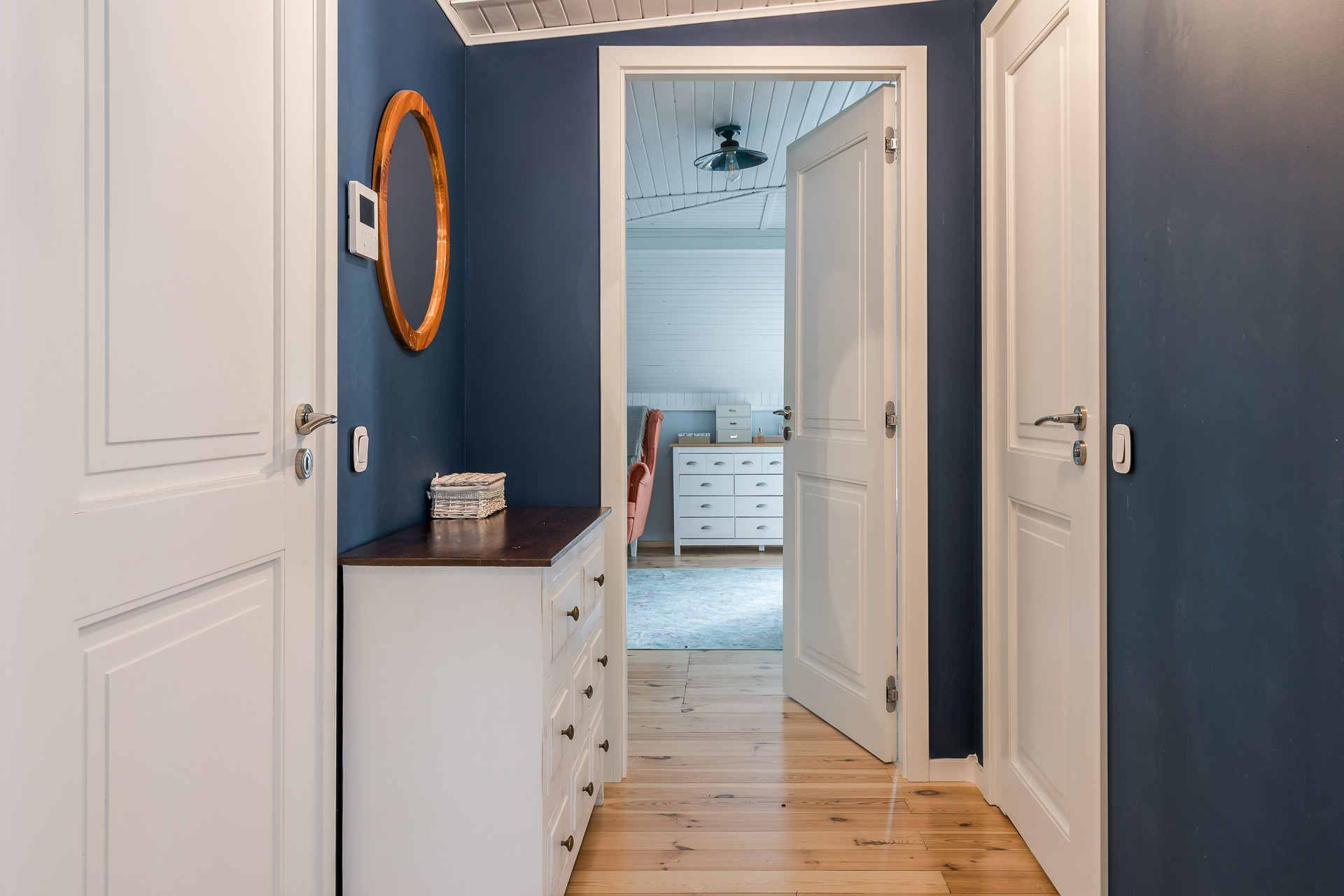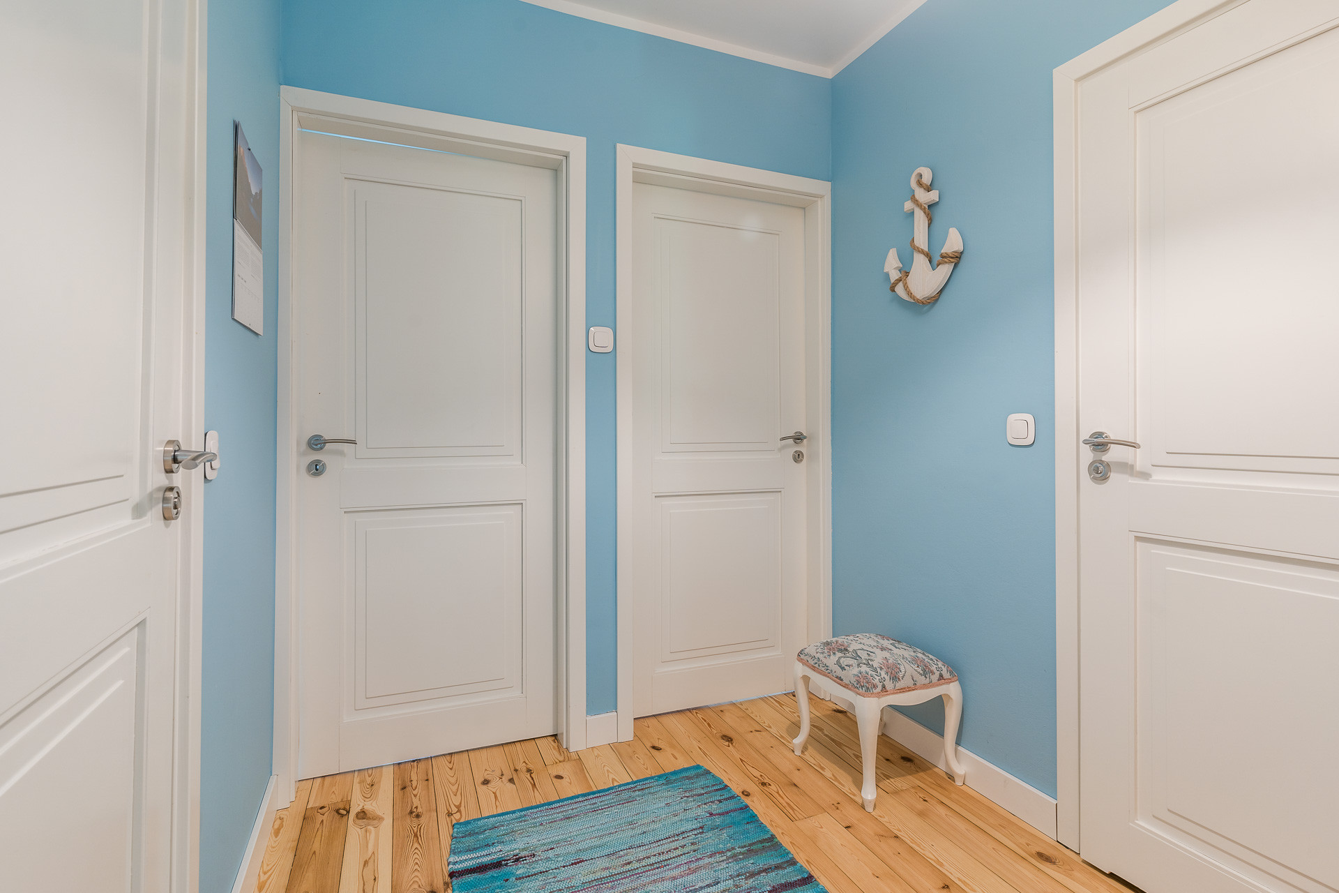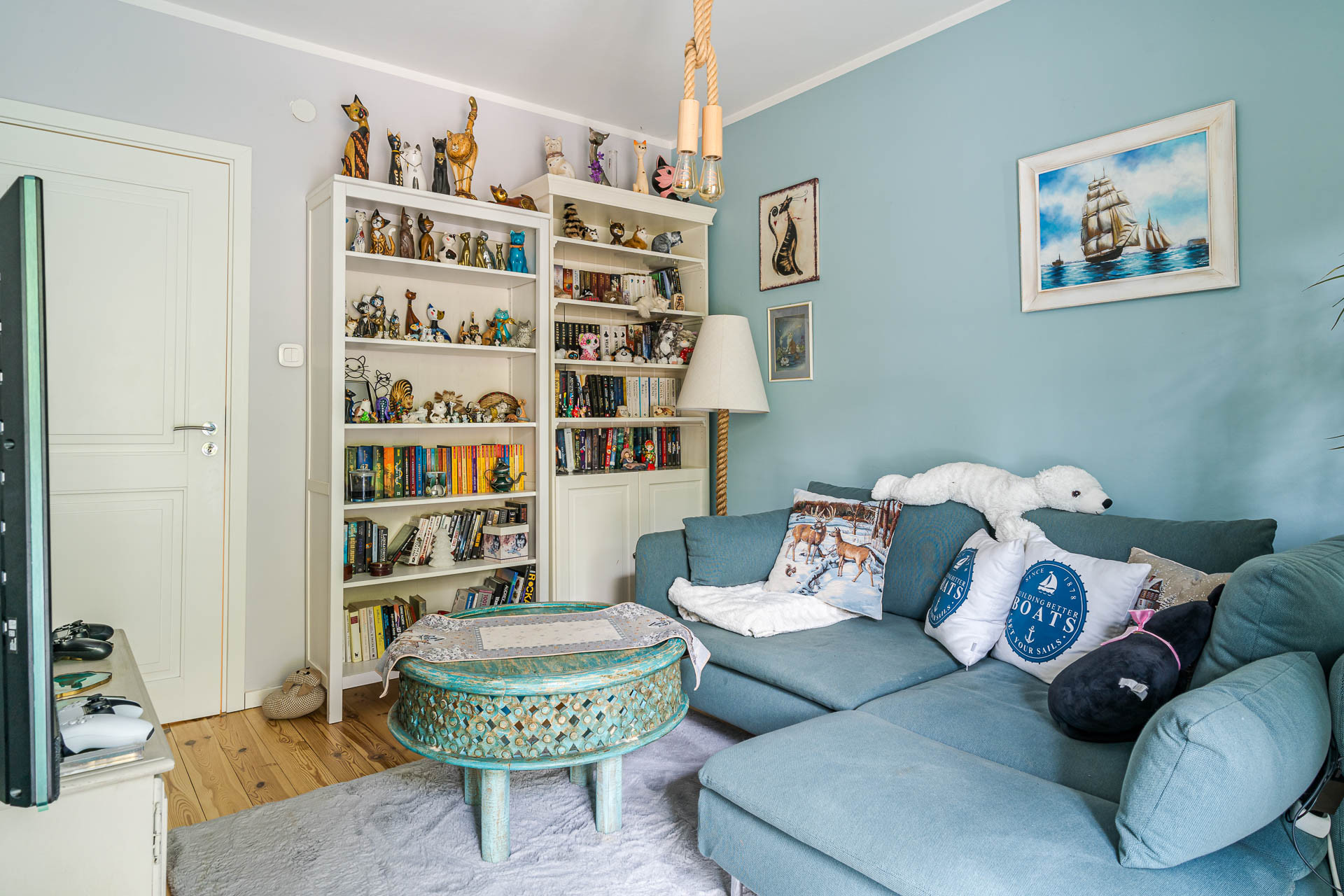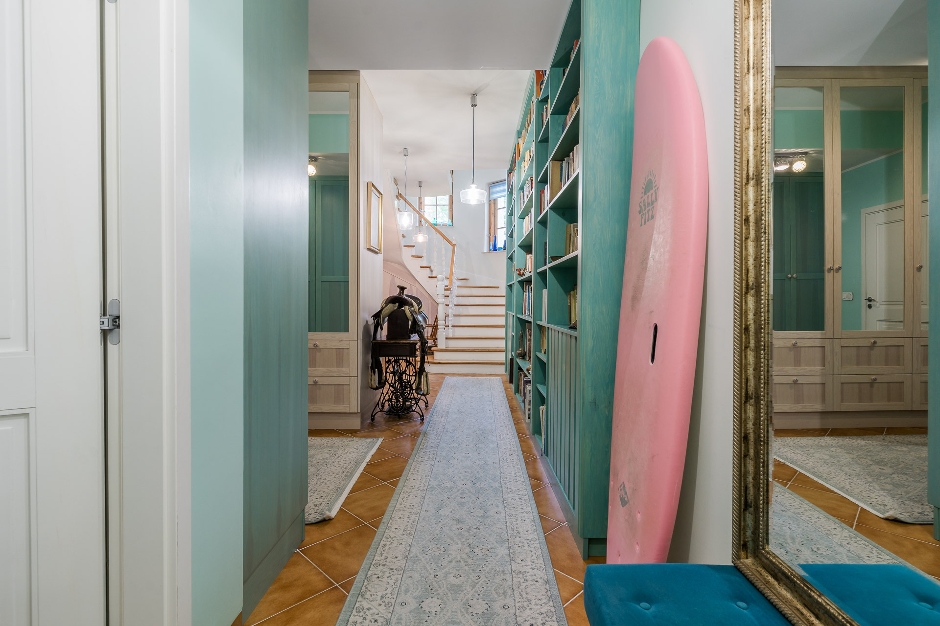 – hall (23,70 m2), gdzie na całej jego długości przymocowano półki na książki,