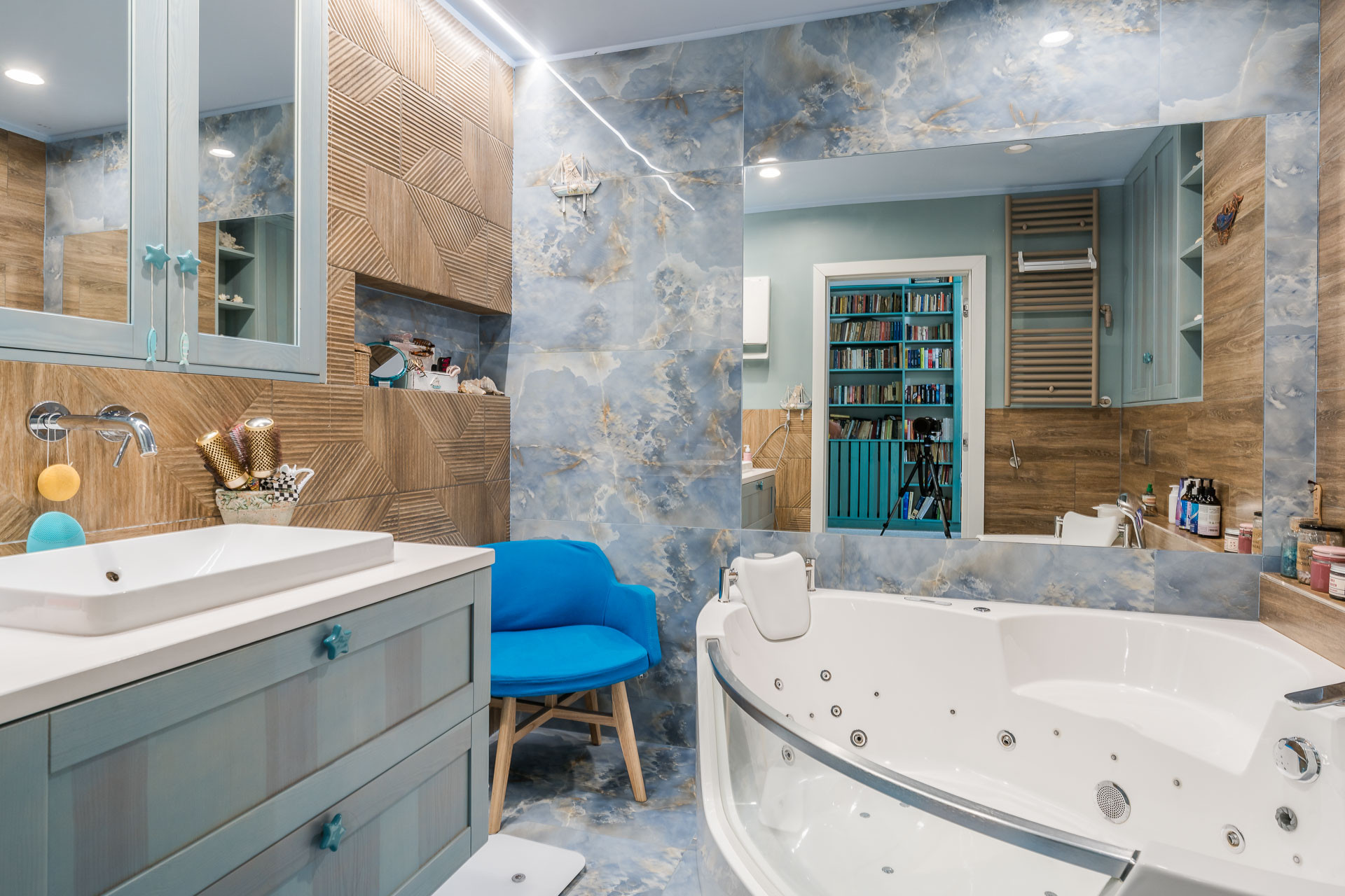 – łazienka (4,10 m2) z WC, wanną typu jacuzzi, umywalką, lustrem,