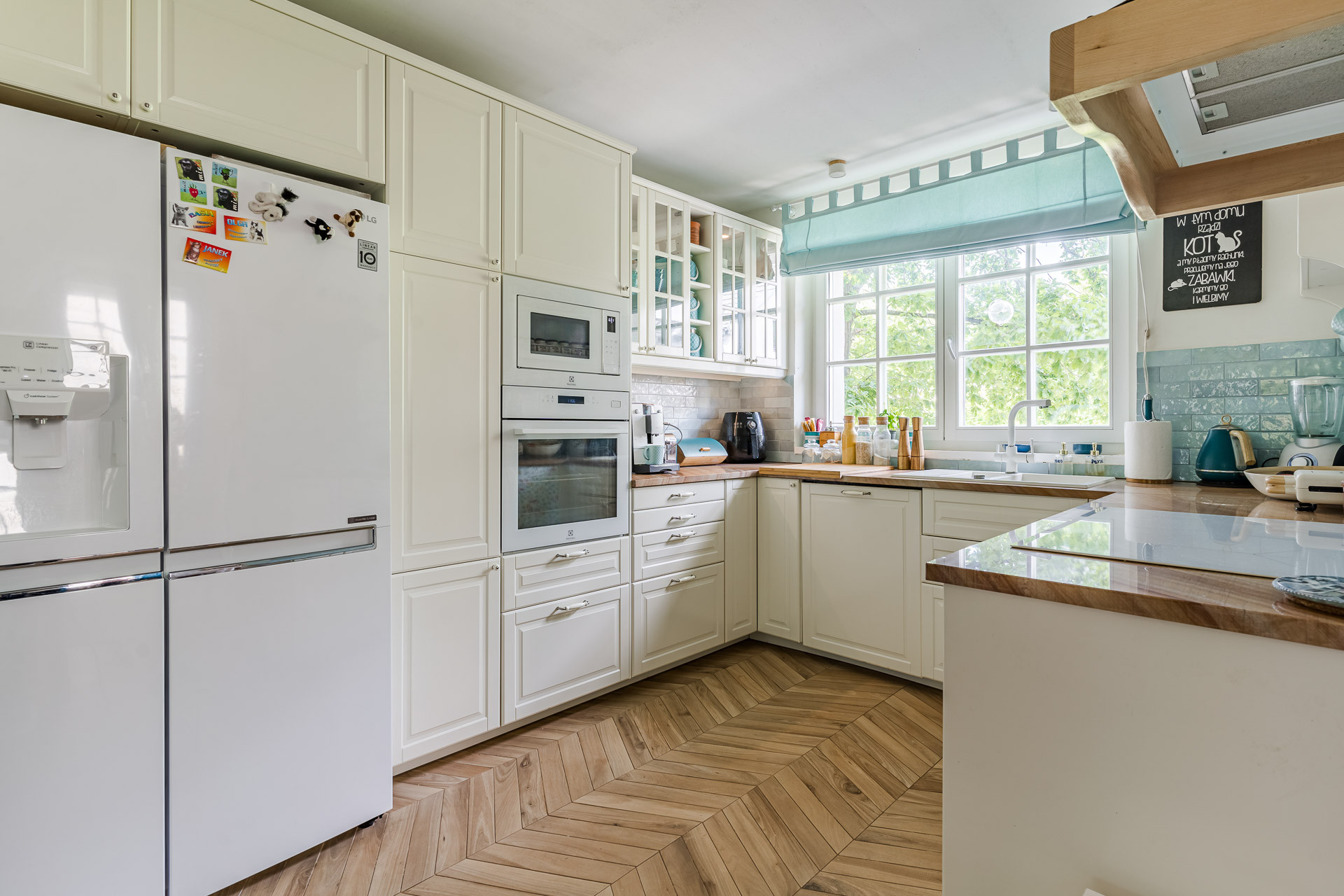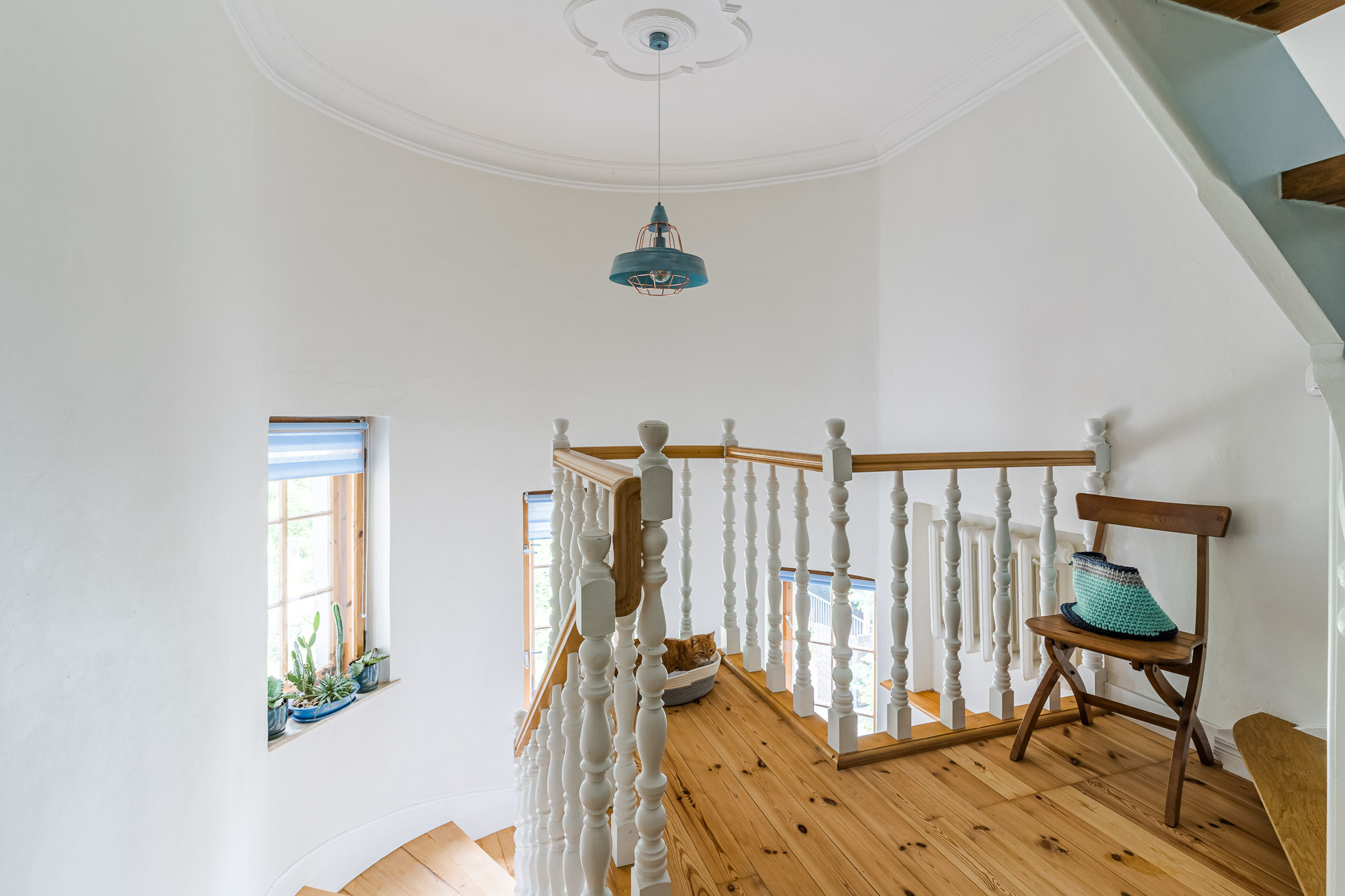 Na podłogach parkiet, deska, płytki i terakota. Klatka schodowa komunikująca wszystkie kondygnacje jest bardzo solidna i wytrzymała, wykonana z drewna (zarówno stopnie, jak i balustrady).