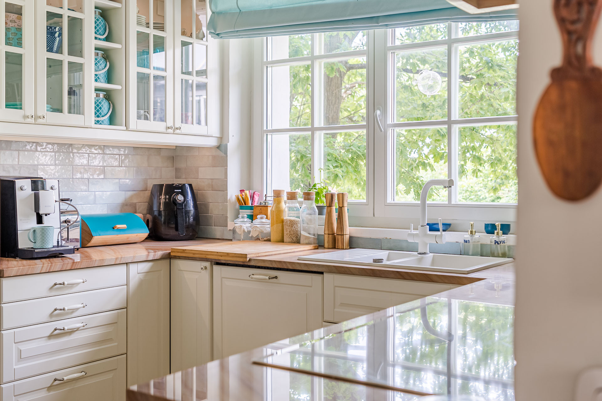 – kuchnia (10,40 m2) z meblami w zabudowie, wyposażeniem w sprzęt AGD oraz oknem;  część kuchenna otwarta na salon,