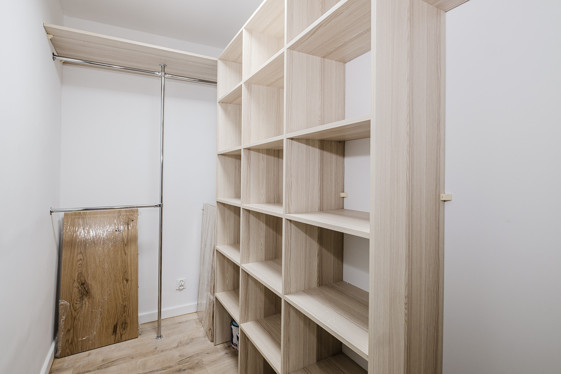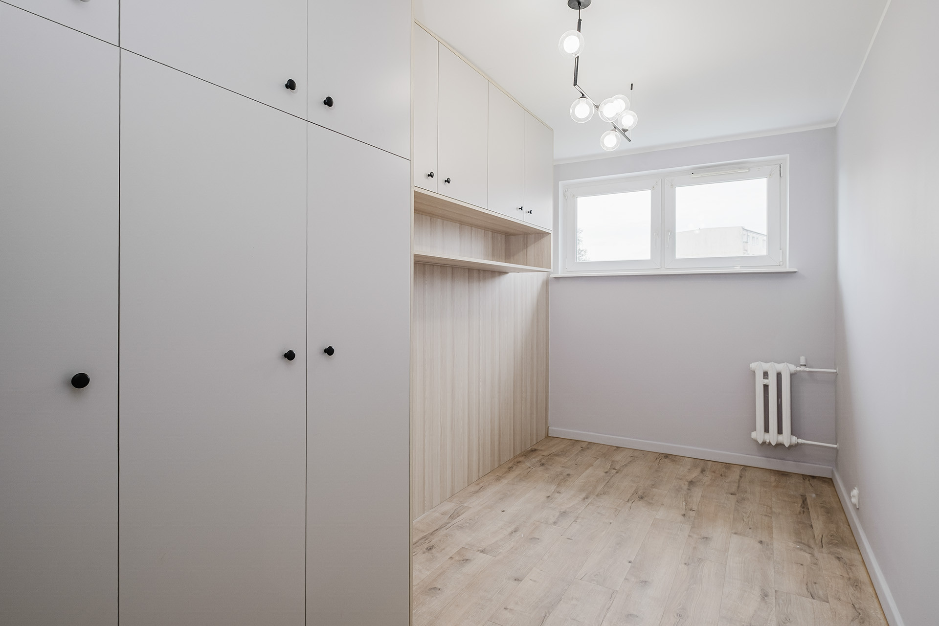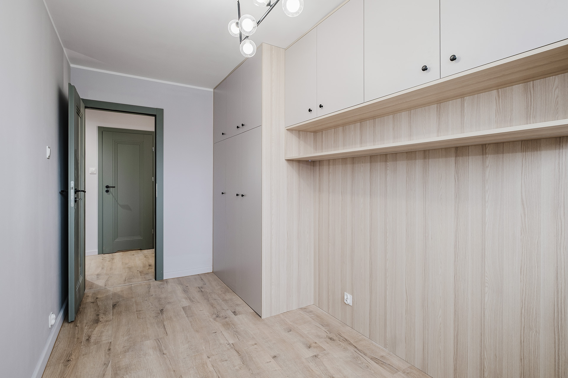 Istnieje łatwa możliwość zlikwidowania garderoby i powiększenia pokoju połączonego z aneksem.