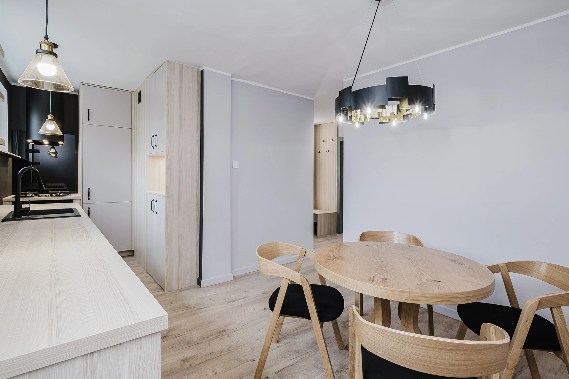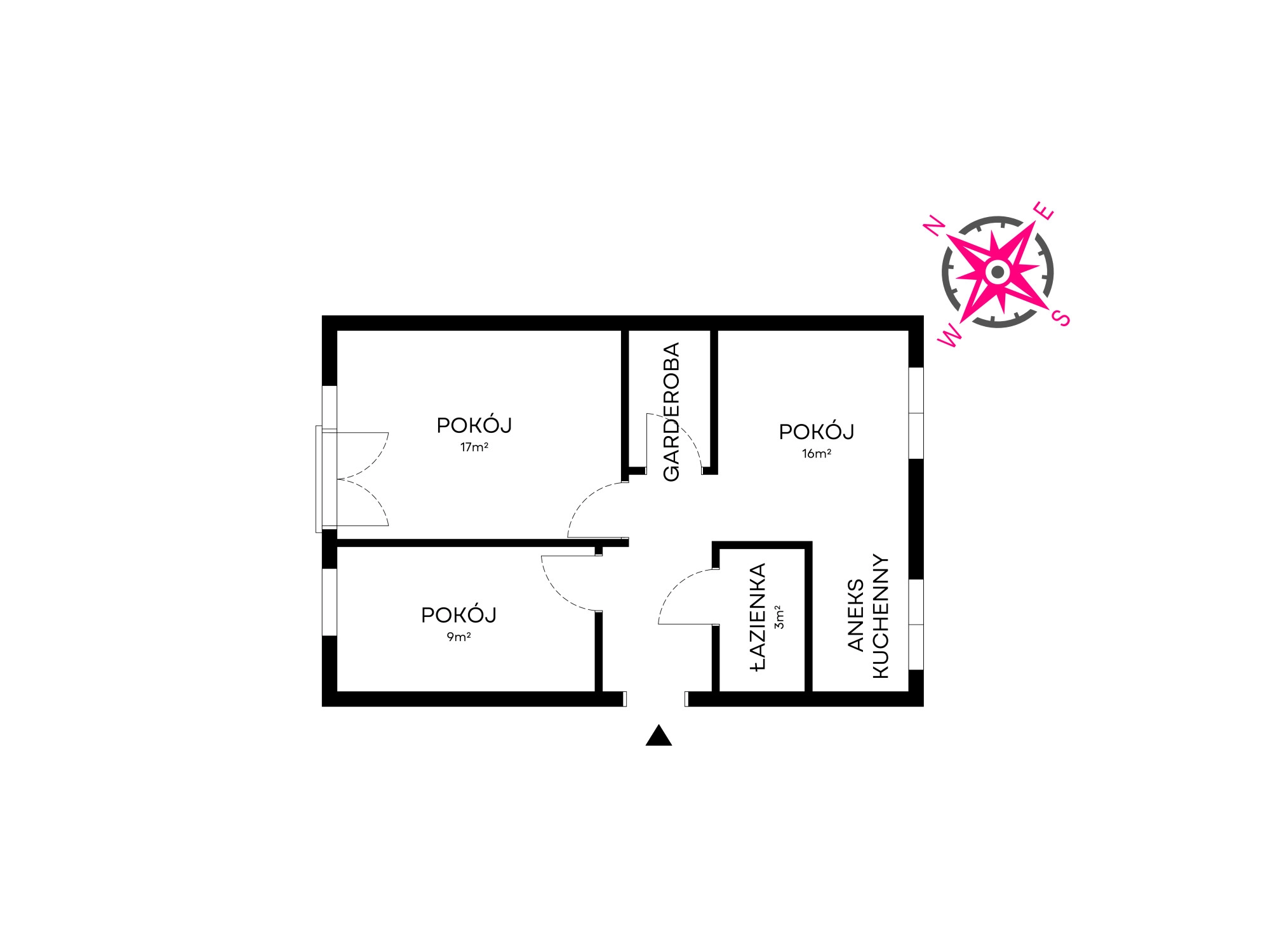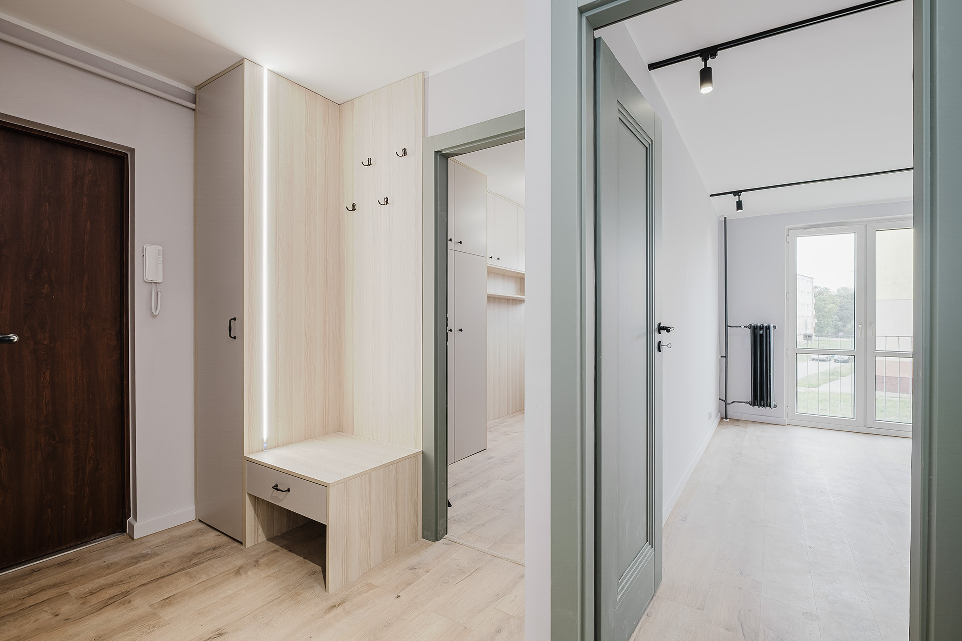 Istnieje łatwa możliwość zlikwidowania garderoby i powiększenia pokoju połączonego z aneksem.