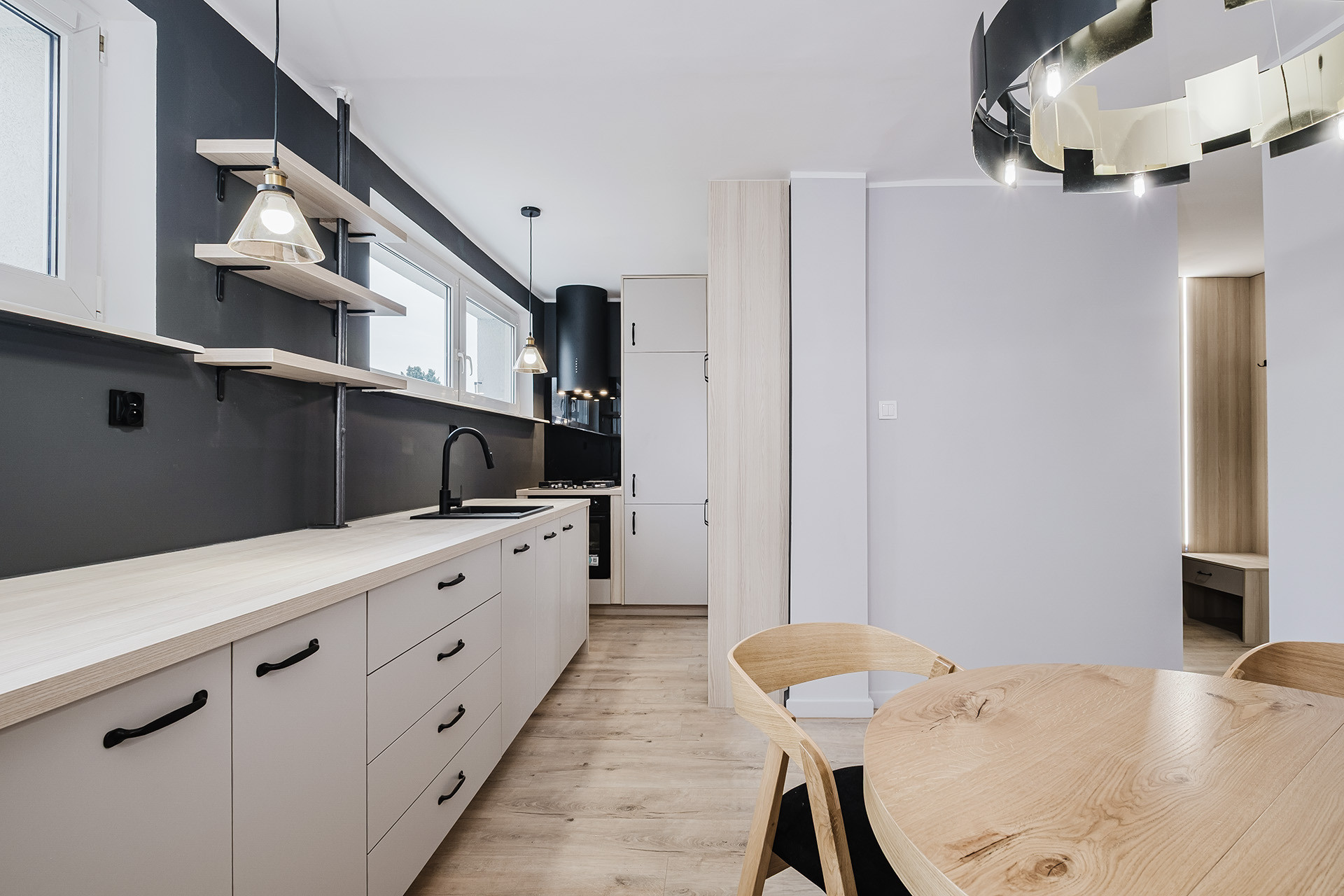 Mieszkanie o powierzchni ponad 53 m2. Znajduje się na 1 piętrze czteropiętrowego budynku. Mieszkanie po właśnie zakończonym generalnym remoncie. Ma nową instalację elektryczną, zmodernizowaną instalację wodnokanalizacyjną, nowe podłogi, drzwi. We wnętrzach wykonana na zamówienie całkowita zabudowa kuchni wraz ze sprzętem AGD, wykończona łazienka oraz bardzo ładne zabudowy szafowe.